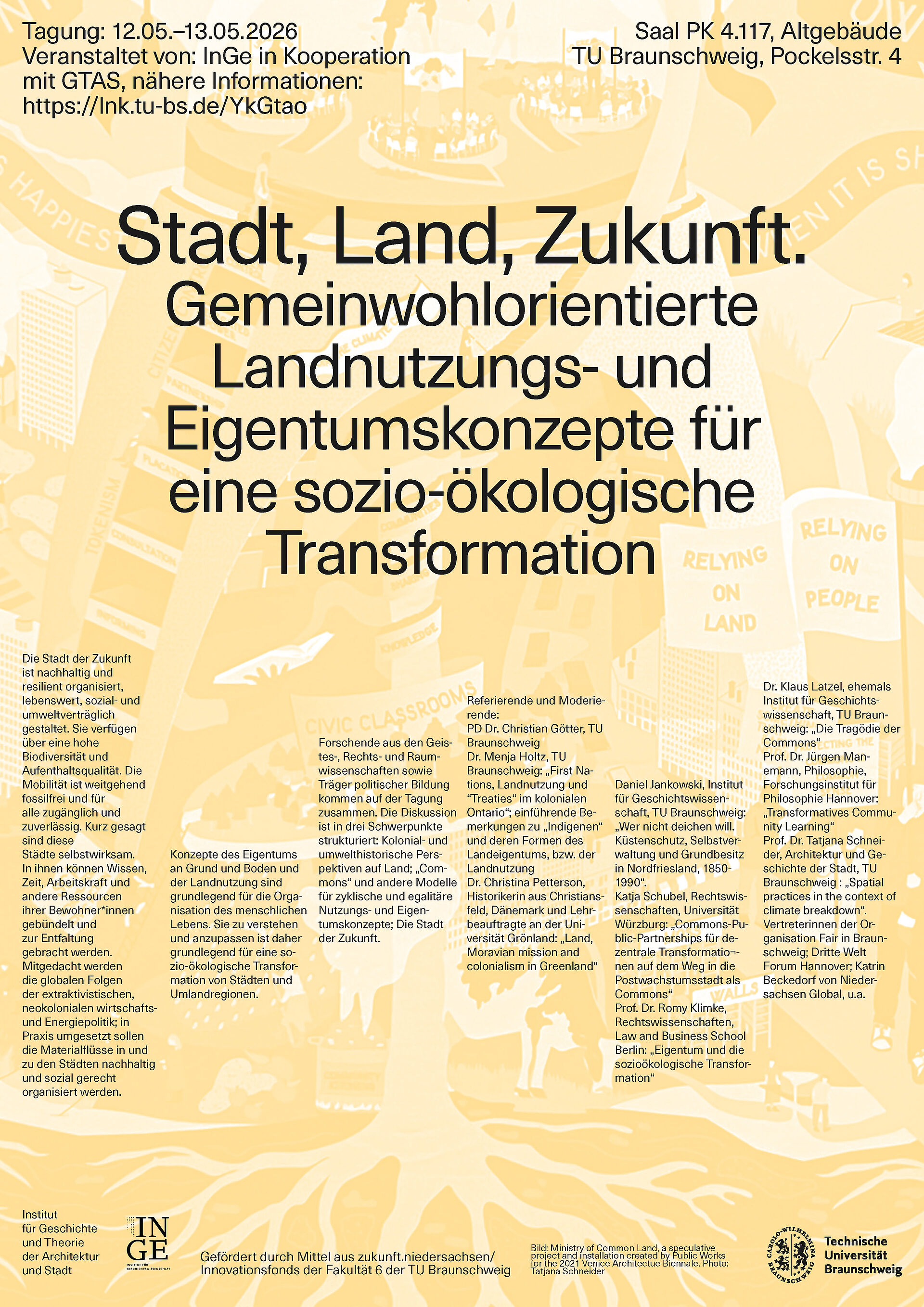 Forschende aus den Geistes-, Rechts- und Raumwissenschaften sowie Träger politischer Bildung kommen auf der Tagung zusammen. Die Diskussion ist in drei Schwerpunkte strukturiert: Kolonial- und umwelthistorische Perspektiven auf Land; „Commons“ und andere Modelle für zyklische und egalitäre Nutzungs- und Eigentumskonzepte; Die Stadt der Zukunft.