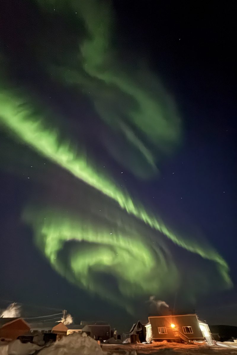 Dort arbeiten sie eng mit der arktischen Gemeinschaft zusammen. Davon profitieren beide Seiten gleichermaßen. „Als mein GPS durch die Kälte ausfiel, hätte ich mich in der unendlichen weißen, flachen Landschaft ohne die einheimischen Kolleg*innen nicht orientieren können“, erinnert sich Cameron. Eine gezielte Probenentnahme wäre ohne diese Unterstützung kaum möglich gewesen. Außerdem hätten die Wissenschaftler*innen nicht halb so viele Wildtiere gesehen.