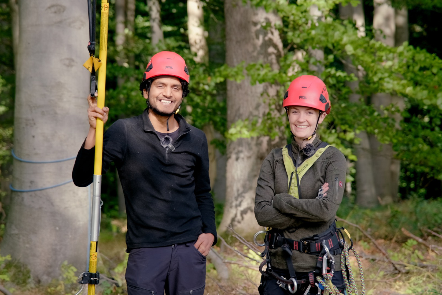 Der Film „Per Seil oder Drohne zur Krone?“ begleitet die beiden Forschungsteams in luftiger Höhe in einem niedersächsischen Laubmischwald südwestlich von Hannover. Christina Hackmann und ihr Kollege Sharath Paligi von der Universität Göttingen klettern mit Mut und Muskelkraft in die Baumkronen. Malkin Gerchow und Steffen Dohmen von der TU Braunschweig hingegen setzen auf innovative Technik: Sie nutzen die eigens entwickelte Sampling-Drohne.