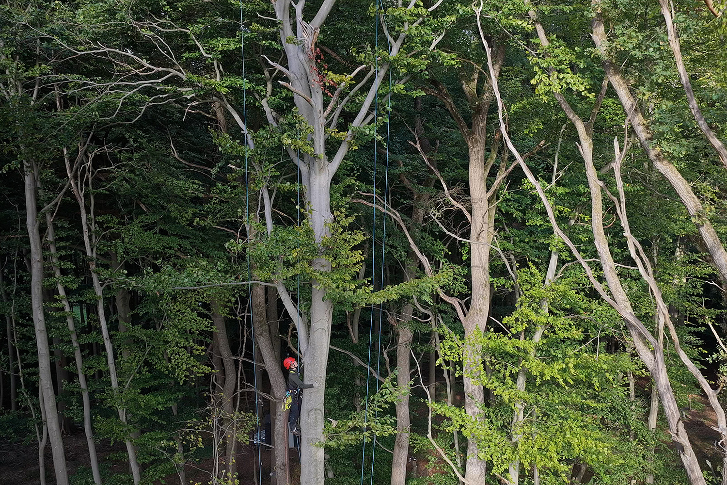 Die Klimakrise setzt unseren Wäldern zu und stellt Wissenschaft und Forstwirtschaft vor große Herausforderungen. Laut dem jüngsten Waldzustandsbericht wiesen im Jahr 2024 36 Prozent der Bäume deutliche Verlichtungen der Baumkrone auf. Nur 21 Prozent der Bäume waren ohne Schäden. Um zu verstehen, wie die Bäume auf Umwelteinflüsse reagieren und wie die Wälder widerstandsfähiger werden können, sind unter anderem Informationen aus der Baumkrone erforderlich. „Die Krone ist unmittelbar den Umweltbedingungen ausgesetzt. Der Zustand eines Baumes lässt sich deshalb am besten dort untersuchen und verstehen“, sagt Dr. Christina Hackmann von der Abteilung Waldbau und Waldökologie der gemäßigten Zonen der Universität Göttingen.