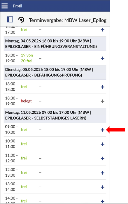 SCHRITT 1 | Buchung eines Termins für das selbstständiges Lasern auf den Epiloglasern