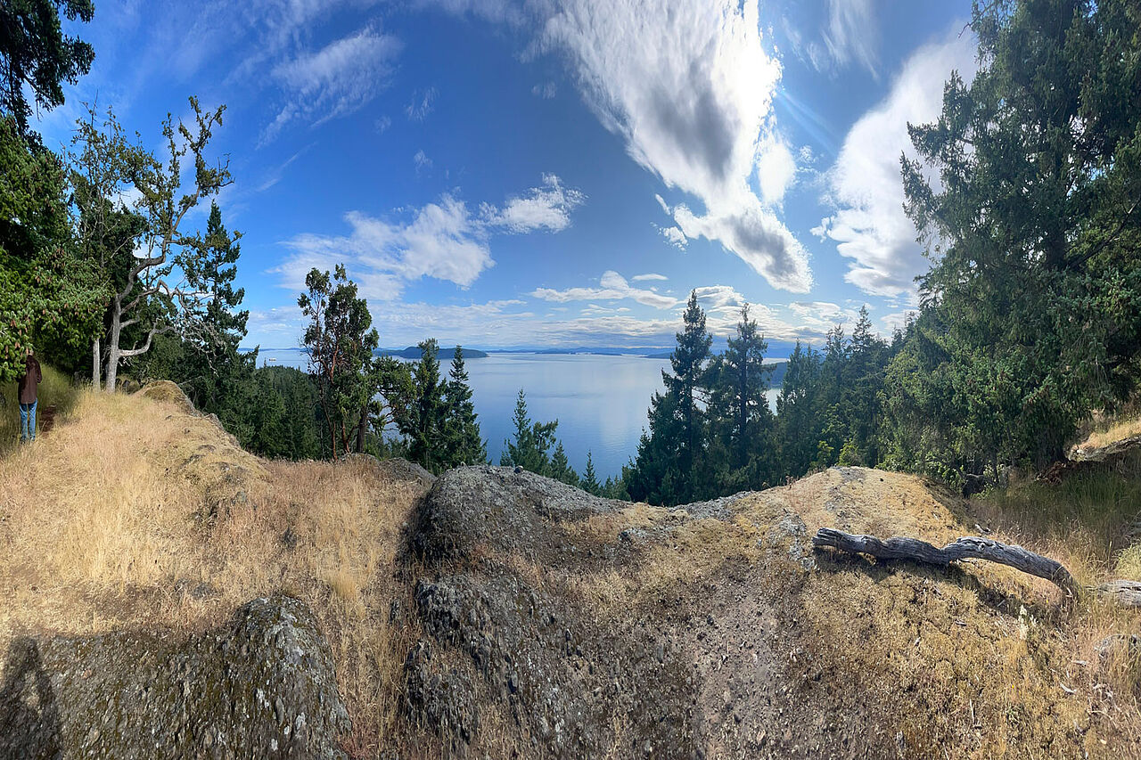 „Komm her, beeil dich! Das musst du sehen!“ So oder so ähnlich hat mich Andréa gerufen, die schon oben am Berg angekommen war und auf die andere Seite blicken konnte. Mit schnellen Schritten bin ich ihr und den anderen die letzten Meter hinterher gestapft, ohne zu wissen, was mich oben erwarten soll. Dann endlich angekommen sah ich direkt, was sie mir zeigen wollte: einen Regenbogen. Und es war nicht nur irgendein Regenbogen, wie wir sie die letzten Tage schon oft vom Auto aus gesehen haben. Er war komplett mit Anfang und Ende. Wir oben auf dem Berg. Unser Ziel erreicht mit wunderschöner Aussicht auf die Berge, Strände und das weite Meer. Den Blick mit dem Regenbogen empfand ich als richtige Belohnung und es ließ mich den lästigen Nieselregen und den matschigen Trampelpfad glatt vergessen. Nachdem ich den Moment in einem Foto festgehalten habe, stand ich einfach da, mit einem Lächeln im Gesicht, schaute in die Ferne, und dachte mir, das zusammen zu erleben mit Freunden, die man erst vor so kurzer Zeit kennengelernt hat, ist einfach großartig. Ein Gefühl der Dankbarkeit und tiefen Freude breitete sich in mir aus.