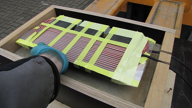 Die Forschungsidee wird ebenfalls direkt in der Praxis getestet. Dabei sollen über fast die gesamte Länge eines Taxistandes am Hauptbahnhof in Hannover Spulen in den Asphalt eingebracht werden, durch die die Elektrotaxen während der Standzeiten induktiv aufgeladen werden. Dies führt zu einem ökologischen Vorteil, da die Energie aus den Spulen direkt aus dem Boden bezogen und emissionsfrei zur Ladung der Taxen genutzt werden kann. Die Aufgabe des Instituts für Straßenwesen konzentriert sich hierbei auf die Integration der induktiven Ladetechnik in den Straßenaufbau. Mitarbeiter des Instituts und Studierende entwickeln hierfür im Labor des Instituts eine nachhaltige und dauerhafte Lösung zur Integration der Spulen in den Asphalt.