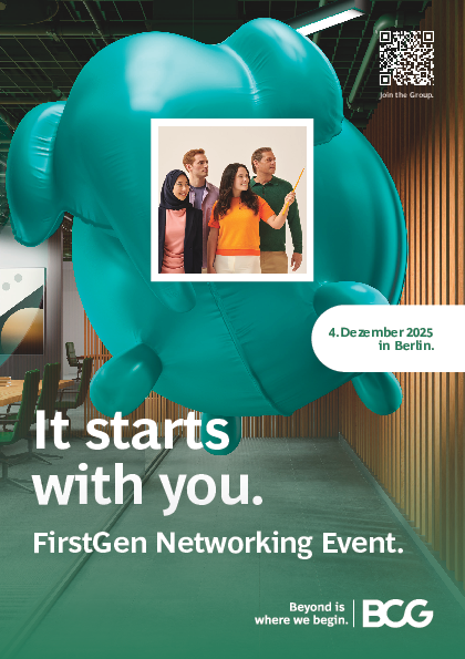 Bereit, Neues zu wagen? Dann ergründe mit der Group neues Terrain und bewirb dich bis zum 23. November 2025 unter: karriere-bcg.de/FirstGen2025