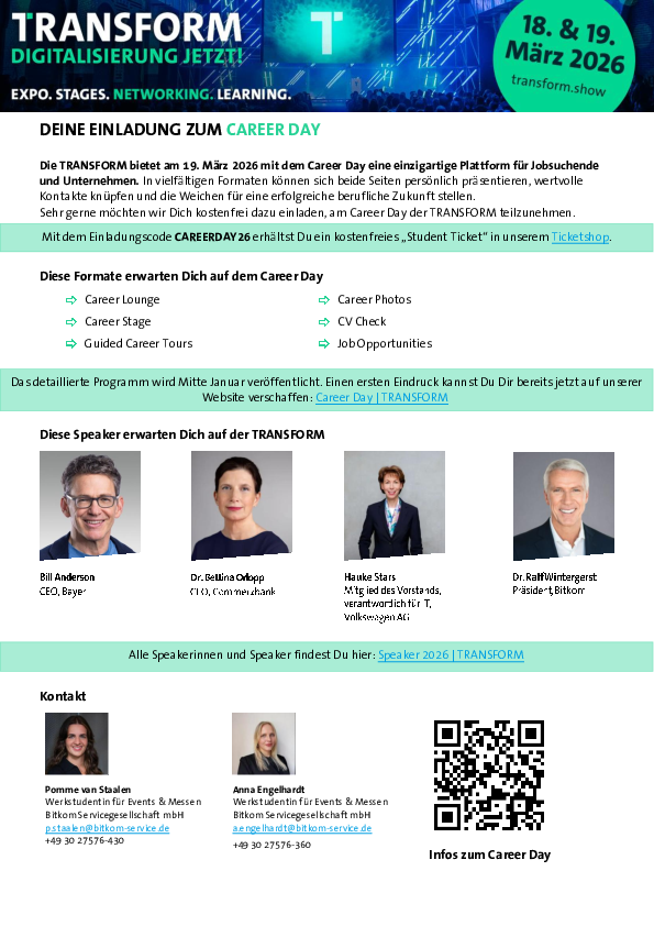 Weitere Infos und den Link zur Anmeldung finden sich hier: Career Day | TRANSFORM