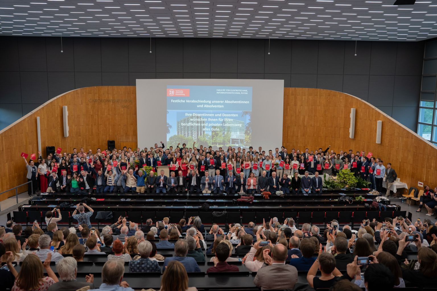 Mit einer festlichen Feierstunde verabschiedeten die Professorinnen und Professoren der Fakultät für Elektrotechnik, Informationstechnik, Physik (EITP) 573 Absolventinnen und Absolventen, darunter 69 Doktorinnen und Doktoren. Im Rahmen der Feier wurden zudem verschiedene Preise verliehen.
