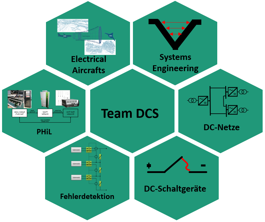 Das Team DC Systeme und Schaltgeräte erforscht ganzheitliche Ansätze und Methoden für die Gestaltung und den Schutz von Energiesystemen insbesondere von DC Systemen. Hierbei wird berücksichtigt, dass verschiedene Akteure wie Forschungseinrichtungen, Netzbetreiber und Erzeugungsanlagenbetreiber Anforderungen an die Transformation der Energienetze stellen. Daher liegt der Schwerpunkt des Teams DC Systeme und Schaltgeräte auf der Weiterentwicklung und Implementierung eines neuartigen kooperativen Ansatzes für das Design und den Schutz von Energiesystemen. Die vielfältigen Kompetenzen des Teams DC Systeme und Schaltgeräte ermöglichen die Bearbeitung der gegenwärtigen Forschungsfragen vom Systementwurf und der Systembewertung von Netztopologien über die Entwicklung und Untersuchung eines Schutzsystems bis hin zur Untersuchung des Schaltgases im ausführenden Schutzgerät. Dieses umfangreiche und in einem Team gebündelte Fachwissen ermöglicht eine leichtere Kommunikation zwischen allen an der Transformation der Energienetze Beteiligten und steigert damit die Qualität des Lösungsdesigns.