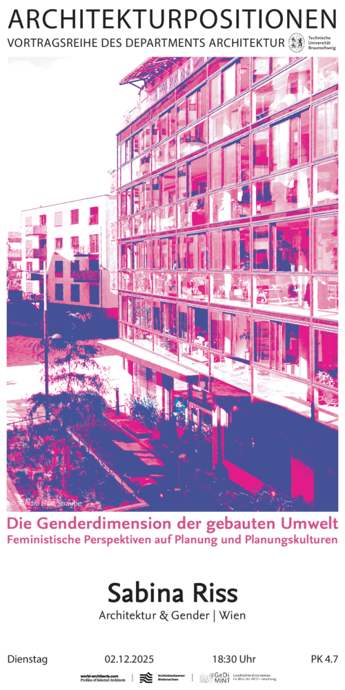 DIENSTAG, den 2.12.2025 um 18:30 Uhr im Hörsaal PK 4.7 (TU-Altgebäude) von SABINA RISS - Gender & Architektur, Wien