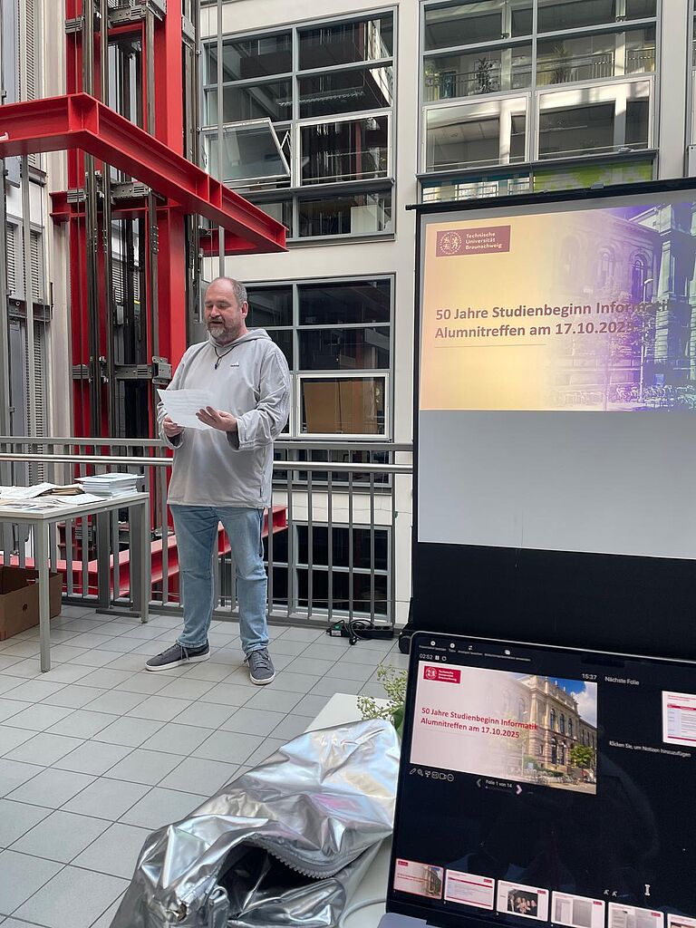 That was the reason for the meeting on Friday 17 October 2025 of almost 30 alumni and thus about half of the first semester students of 1975 on the Computer Science course. Computer Science was introduced at TU Braunschweig in 1972 as a new degree programme - it was the first Computer Science course in Lower Saxony at the time and was one of the first generation of fourteen Computer Science subjects in Germany.