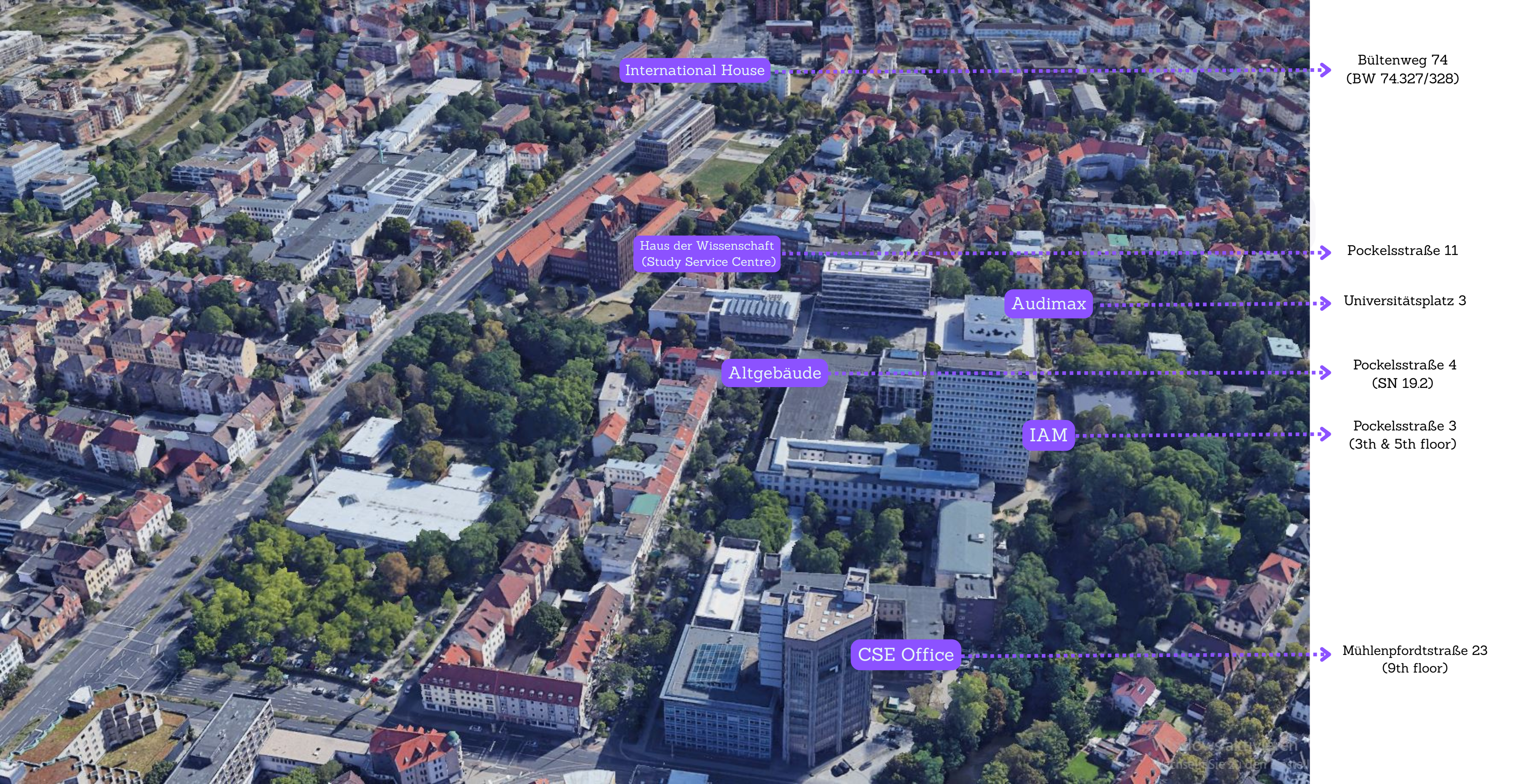 An overview of all important Induction Days locations, including lecture halls, laboratories and meeting points, can be found marked on a map further down this page.
