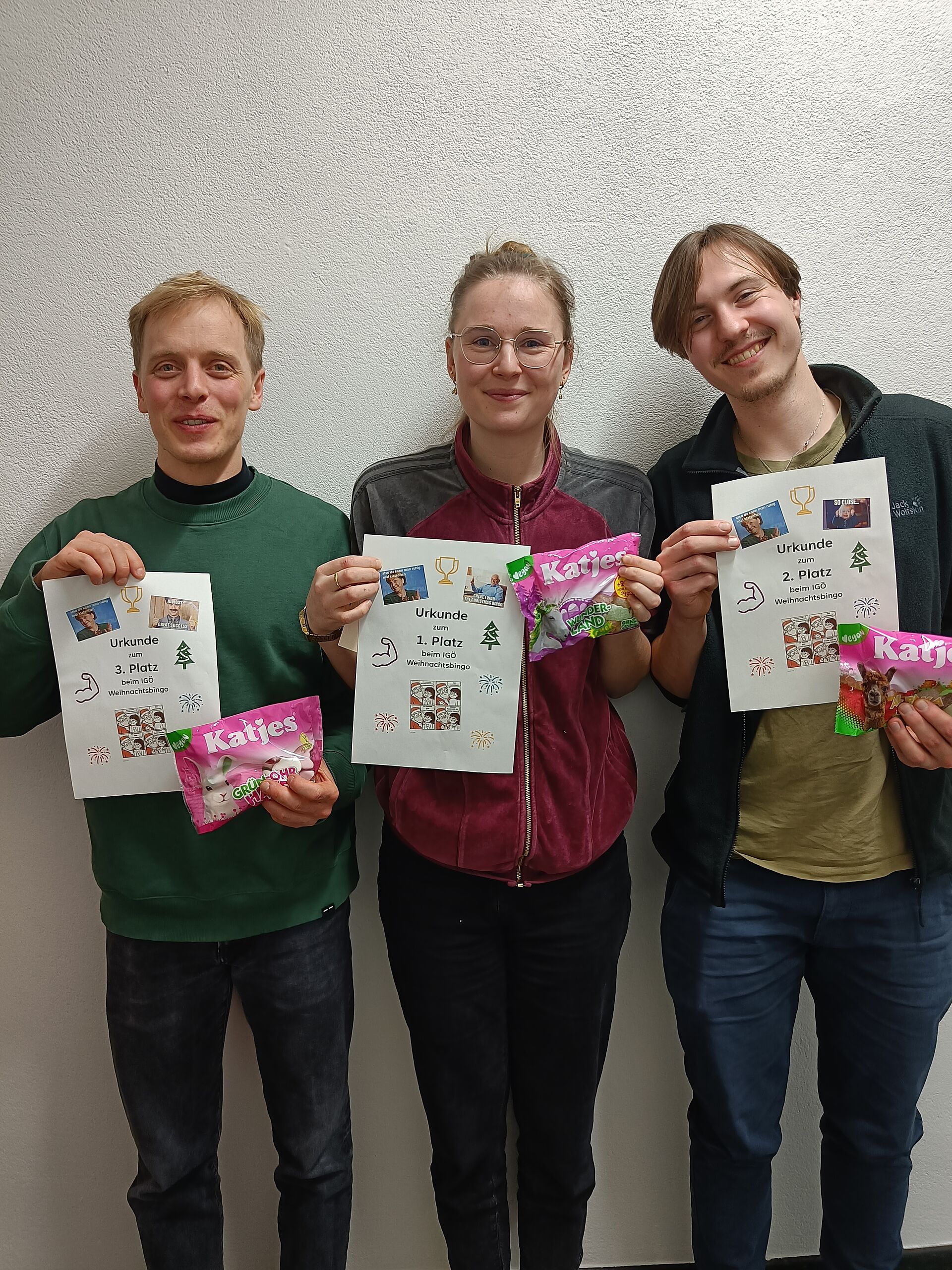 We are taking a break for the winter holidays with a photo of the winners of the 1st IGÖ Christmas Bingo. Congratulations Lina, Finn and Gregor!