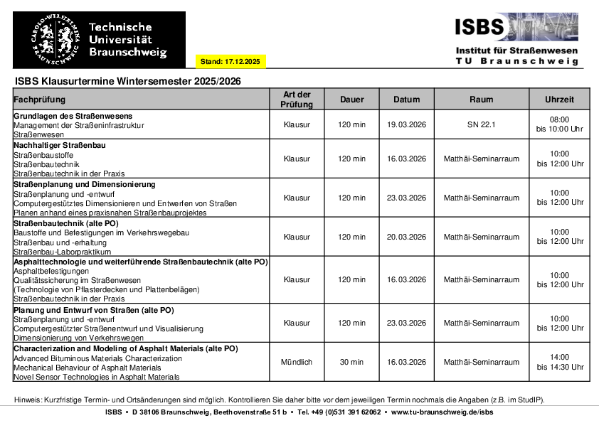 Registration for exams in modules under the old examination regulations (PO) must be done directly with Mr. Büchler (s.buechler(at)tu-bs.de). Registration via the TUconnect portal is not possible for these exams.
