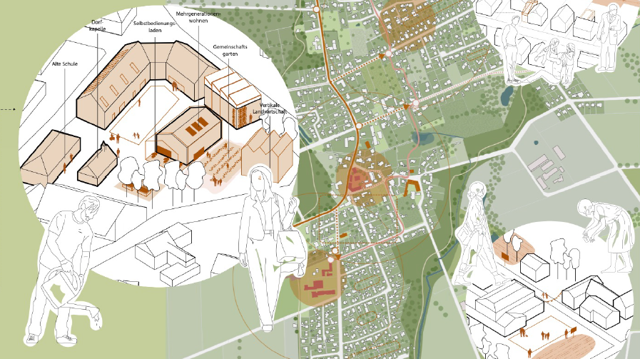 The project: The project team developed a concept for the sustainable development of the place based on the mission statement “Green Community.” The starting point was an open workshop with citizens, children, farmers, the mayor, and other local stakeholders. In this dialogue-oriented process, perspectives, wishes, and challenges were gathered and reflected upon together. Building on this, we developed a future strategy with three impulse strategies that outline pathways for participatory and sustainable inner development.