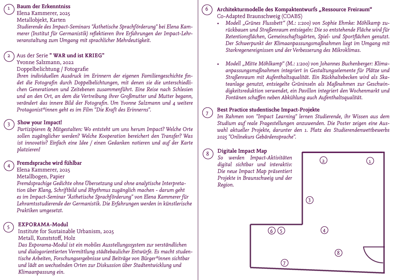 Once again this year, prizes were awarded for the three best student impact projects. The awards went to projects that were developed and implemented as part of impact courses and that stood out for their special social added value, participatory collaboration, and sustainability. The winning teams will receive a Braunschweig city voucher worth up to €300, sponsored by the Ecki Wohlgehagen Foundation.