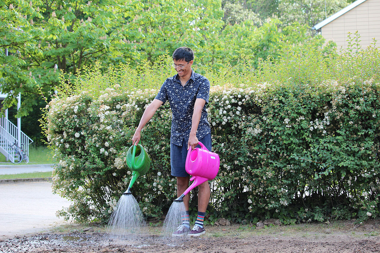 With the “Sandkasten” (sandbox) platform, students have the opportunity to make the campus more livable and sustainable with their own projects. They can receive project funding and guidance for their projects. Around 150 projects have already been implemented, such as the self-built open-bike sensors for more bicycle safety in everyday life, the "Feminist Café" event series, a science podcast or the wildflower meadow on the main campus.