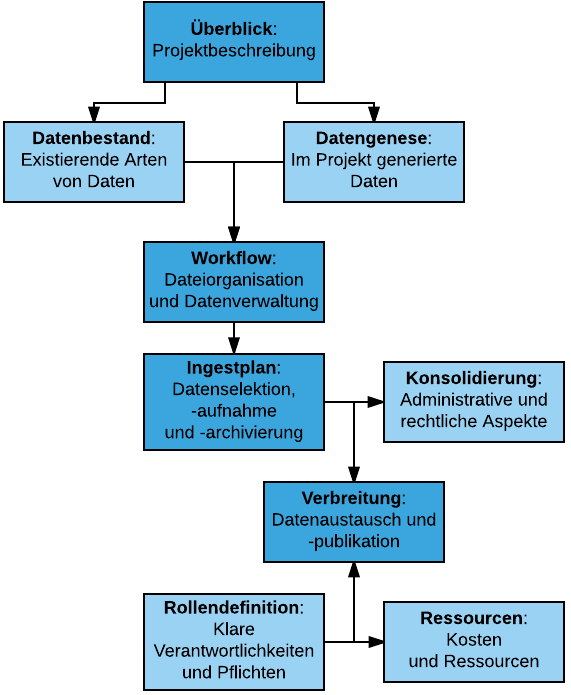 Einen guten Überblick für die Erstellung eines Datenmanagementplans gibt es hier: