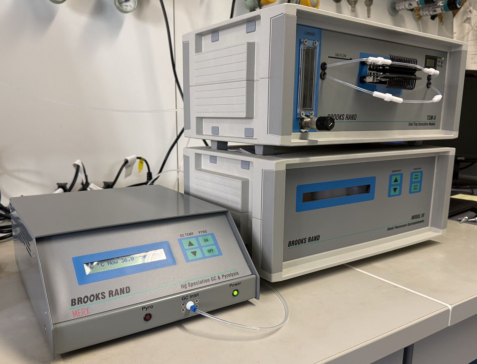 Trennt und quantifiziert verschiedene Quecksilber-Spezies (z. B. anorganisches und methyliertes Quecksilber), durch chemische Aufbereitung, chromatographische Trennung und anschließende mittels kaltdampf-atomarer Fluoreszenzspektroskopie (CVAFS) hochsensitiv misst.