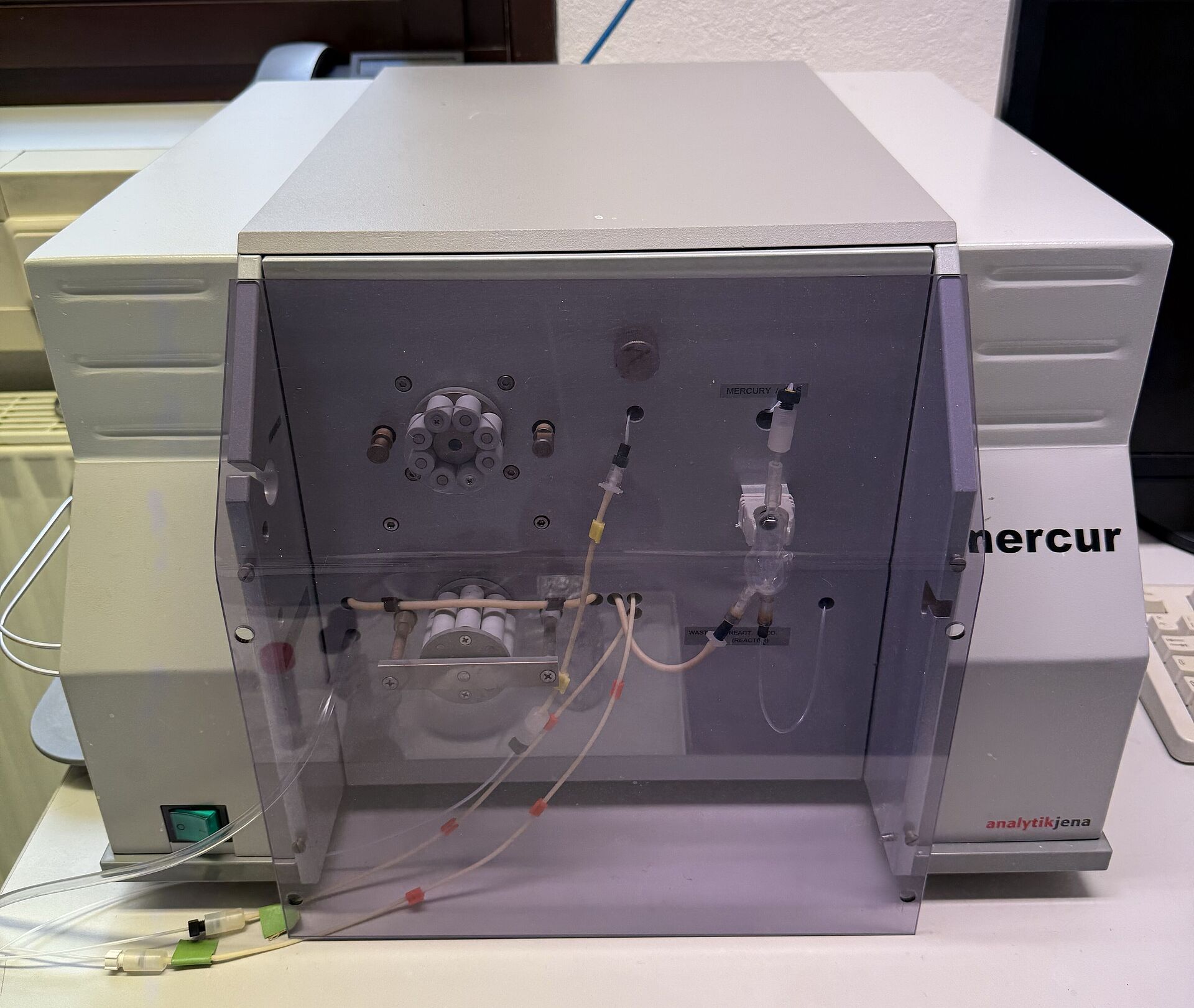 Bestimmt den Quecksilbergehalt in wässrigen Proben mittels Kaltdampftechnik. Das freigesetzte Quecksilber wird amalgamiert und anschließend mittels atomabsorptionsspektroskopischer Messung quantifiziert