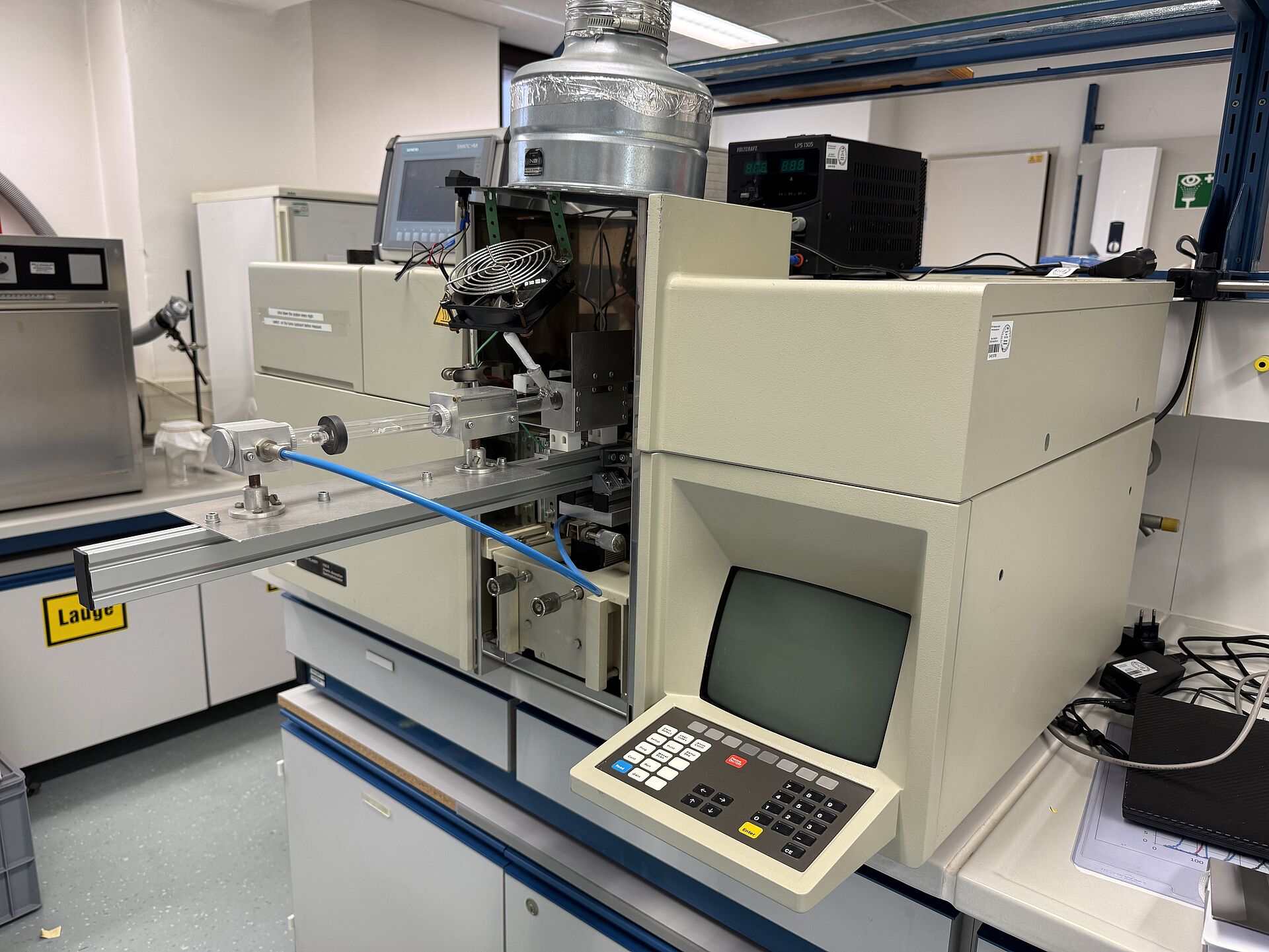 Die Pyrolyseeinheit mit der Messzelle befindet sich in der Detektionseinheit eines Atomabsorptionsspektrometers (Perkin Elmer AAS 3030). Alle freigesetzten Hg-Verbindungen werden durch thermische Reduktion in Hg0 umgewandelt und durch flammenlose Atomabsorptionsspektroskopie unter Verwendung eines kontinuierlichen Detektionsmodus mit D2-Untergrundkompensation nachgewiesen.