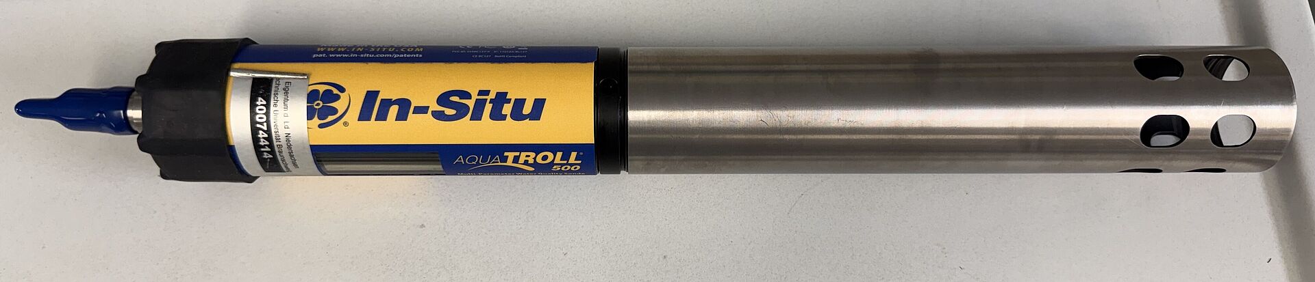 Eine Wasserqualitätssonde, die Parameter wie Temperatur, Leitfähigkeit, gelösten Sauerstoff, pH und Trübung gleichzeitig misst.