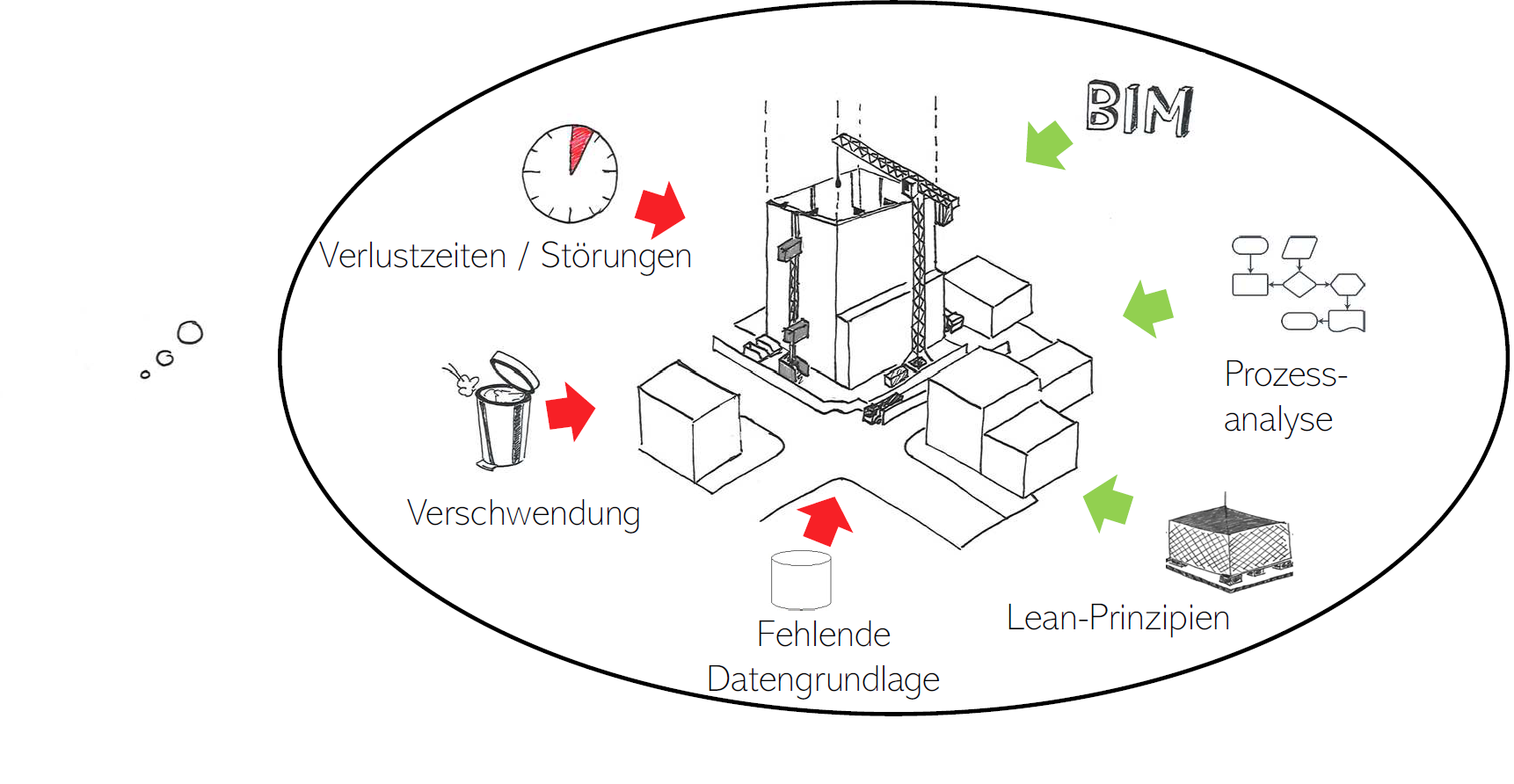 Die Forschungsidee bestand in der phasenübergreifenden Nutzung digitaler Modelle für die jeweiligen Aufgaben der Baulogistik – von frühen Machbarkeitsuntersuchungen bis hin zur Detailplanung der „Last Mile“ mit Materiallieferungen zum Verwendungsort. Mit einer vorausschauenden und auf Daten basierenden Planung der Baulogistikprozesse soll die Grundlage geschaffen werden, sowohl aus logistischer Perspektive frühzeitig verlässliche Aussagen hinsichtlich einer generellen Machbarkeit zu treffen als auch eine laufende Optimierung des Ablaufs durchzuführen. Innerhalb des Forschungsvorhabens wurden relevante Zusammenhänge einer modellbasierten Planung der Baulogistik unter Berücksichtigung von LEAN-Prinzipien untersucht. Anhand einer Untersuchung von „Referenzgewerken“ sollten grundlegende Strukturen für und Anforderungen an Baulogistikmodelle entwickelt werden.