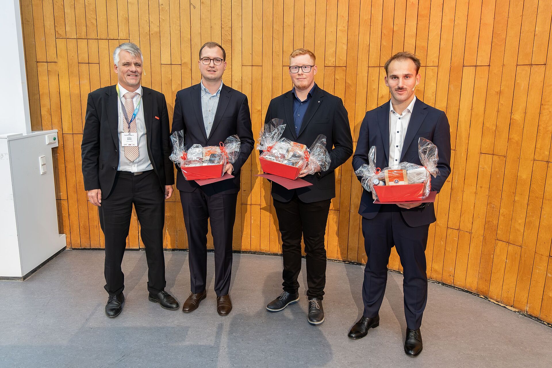 Der erste Tagungstag wurde mit der Verleihung des Dietmar Hosser-Preises für herausragende Studierendenarbeiten beendet. Herr Rattelmüller (Technische Universität München) konnte mit seiner angefertigten Masterarbeit „Evaluierung der Maßnahmen des vorbeugenden Brand- und Gefahrenschutzes - Teil 12: Quantitative Analyse der Rettungswegnutzung im Brandfall“ die Jury überzeugen und erhielt den ersten Preis. Mit einem anschaulichen Vortrag präsentierte er seine Arbeit dem anwesenden Fachpublikum. Mit seiner Arbeit zur „Influence of Local Vegetation on Fire Spread Mechanisms in Surface Fires“ belegte Herr Buhk (Lund University) den zweiten Platz. Über den dritten Preis konnte sich Herr Rose (Technische Universität Braunschweig) mit seiner Arbeit zur „Einfluss der Wohnungsabschlusstüren auf die Brandsicherheit von Treppenräumen in mehrgeschossigen Wohngebäuden“ freuen.