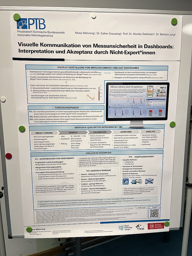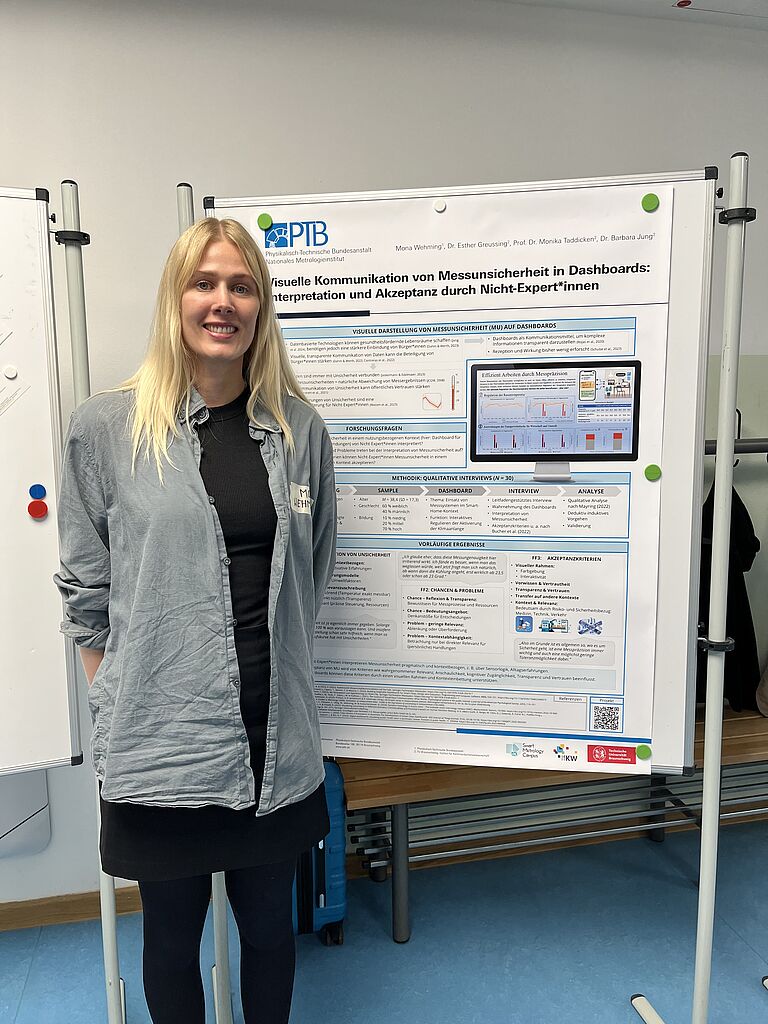 Mona Wehming präsentierte (gemeinsam mit Esther Greussing, Monika Taddicken und Barbara Jung) ein Poster zum Thema "Der Einfluss von visualisierter Unsicherheit auf Dashboards auf das Unsicherheitsverständnis von Nicht-Expert*innen – Eine qualitative Studie am Beispiel von Smart Cities".