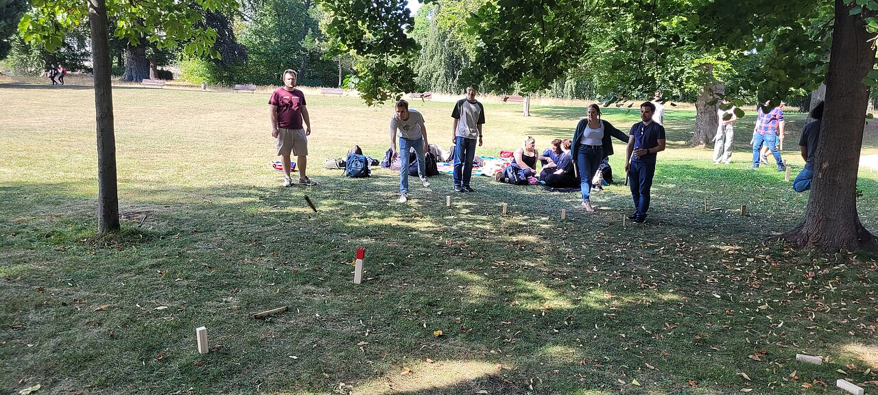 Am Schloss Wernigerode trafen wir wieder zusammen und begaben uns auf eine spannende Führung durch die originalgetreu erhaltenen Gemächer. Von Geschichten über das Leben der Hofkinder bis hin zu den Besuchen Kaiser Wilhelms gab es viel zu erfahren. Anschließend stand im nahegelegenen Lustgarten ein Wikingerschach-Turnier auf dem Programm. Nach einer kurzen Erfrischungspause traten vier Teams in mehreren Runden gegeneinander an, während die übrigen vom Spielfeldrand aus mitfieberten. Nach der Siegerehrung kehrte die Gruppe zurück zum Institut, wo der Ausflug beim traditionellen Abschlussgrillen ausklang.