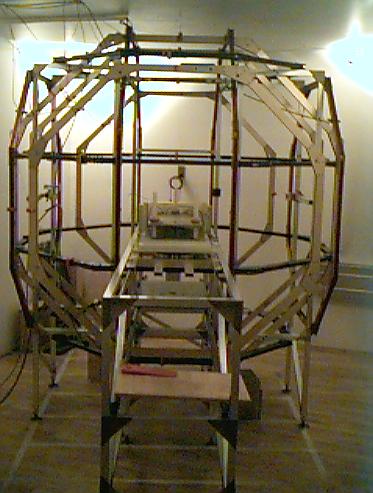 Hier steht das Kalibrierspulensystem. Es ist ein 3-Achs-Braunbek-System mit etwa 2,5 m Durchmesser.