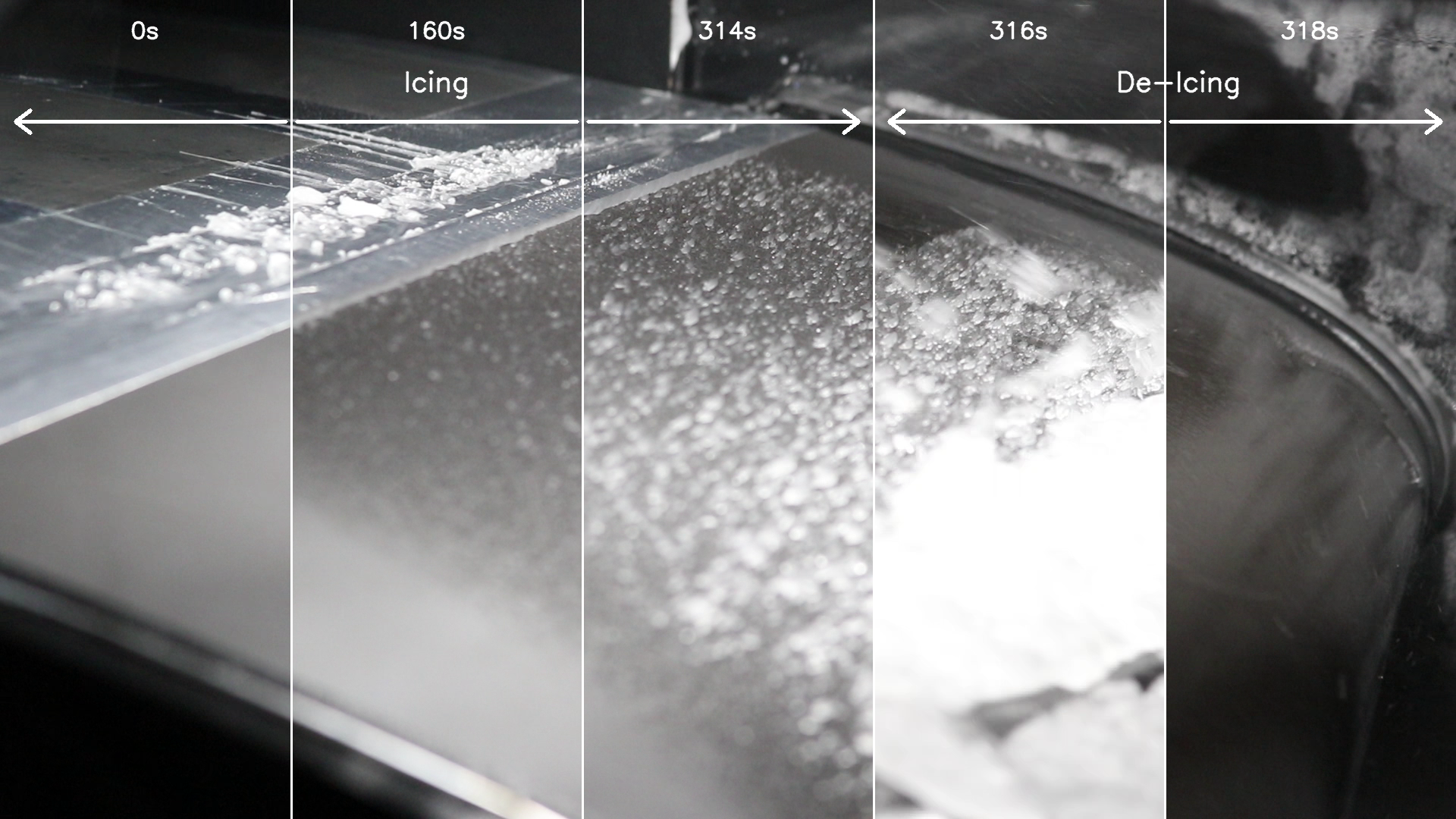 The hybrid ice protection system is characterized by significantly lower energy consumption during operation compared to conventional thermal ice protection systems. While today's kerosene-powered aircraft rely on bleed air-dependent deicing procedures, the hybrid system enables more efficient deicing that is suitable for use in electrified aircraft. It thus functions as an important enabler technology for energy-efficient flying in future electrified aircraft.