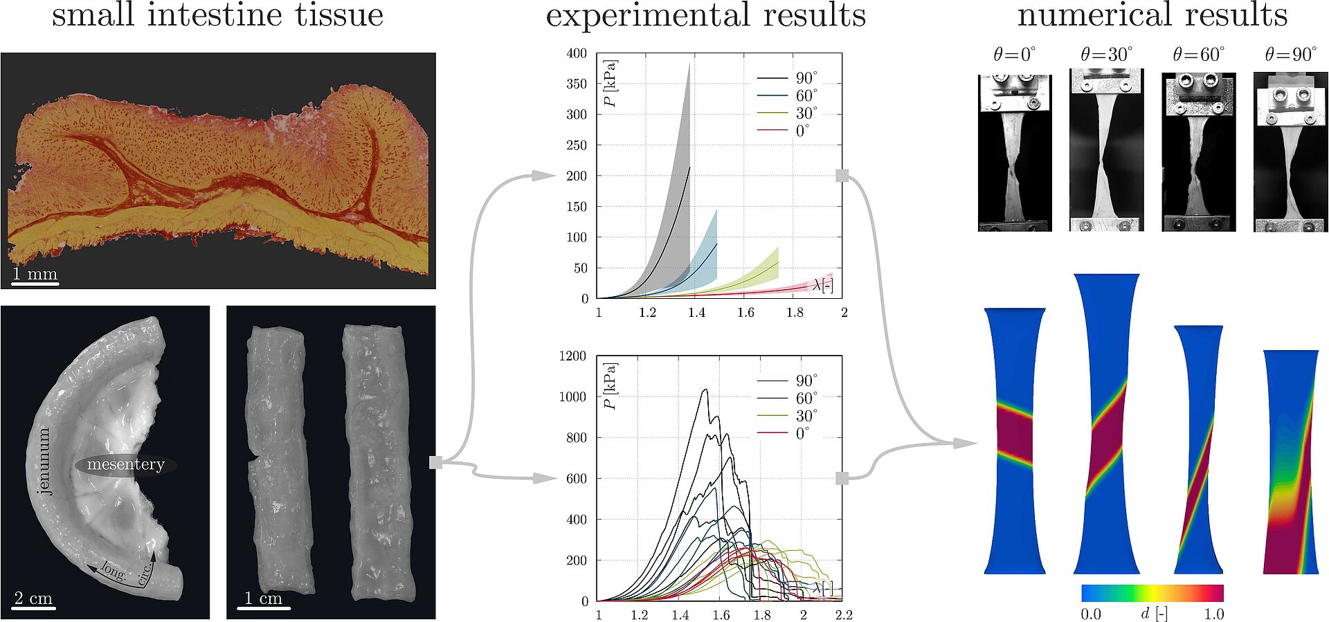 This research project therefore aims to, (i) understand for the first time the fundamental mechanical processes that occur during a GIP through layer-specific experiments under both active and passive conditions, and (ii) describe and predict them for the first time using a numerical three-dimensional model that will be calibrated and validated based on these experiments. To achieve this goal, intestinal tissue from healthy pigs will be used, as it is structurally and functionally similar to human intestinal tissue. The preparations will be examined both biomechanically and histologically in order to identify microstructural and mechanical properties from position-dependent information.