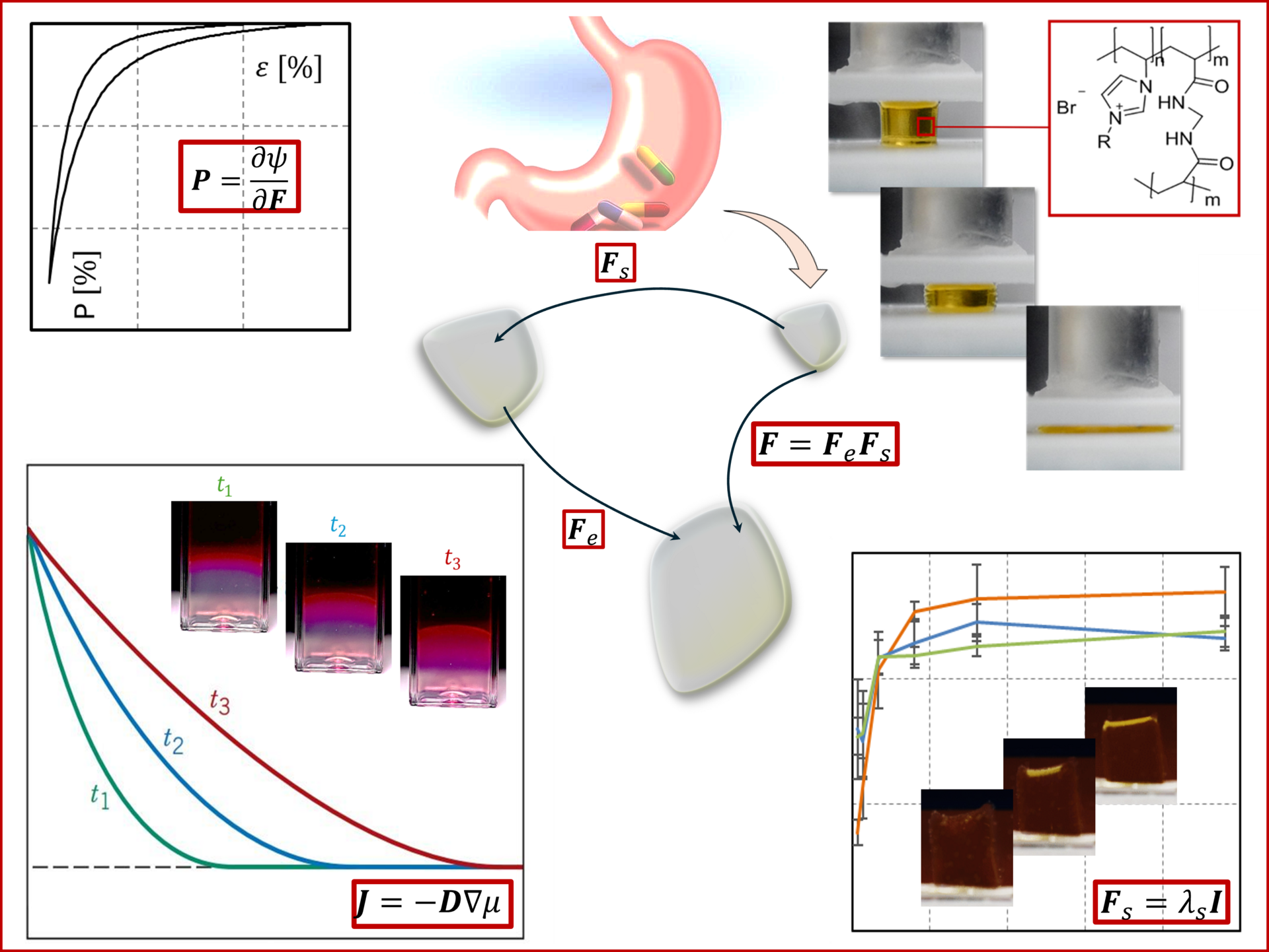 The pH-sensitive release from hydrogels in media that simulate the gastrointestinal tract has been explored for oral delivery and show, among other drawbacks, too low mechanical stability and too slow response to external stimuli for use in medication. To overcome the disadvantages of hydrogels in medical applications, the present project aims to investigate hydrogels based on polymerized ionic liquids (PILs).