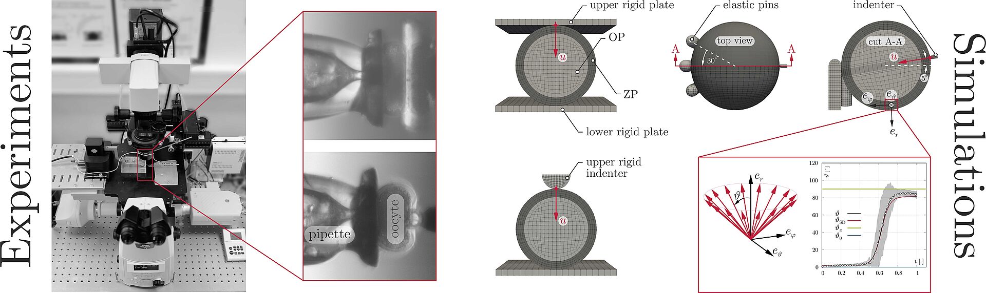 In particular, new experimental methods are to be developed that allow the sampling of oocytes under various deformation states, such as axial/biaxial tension, compression, indentation, and inflation. This large number of different experiments enables the mechanical identification of the individual components of oocytes as well as the validation of the modelling approach.