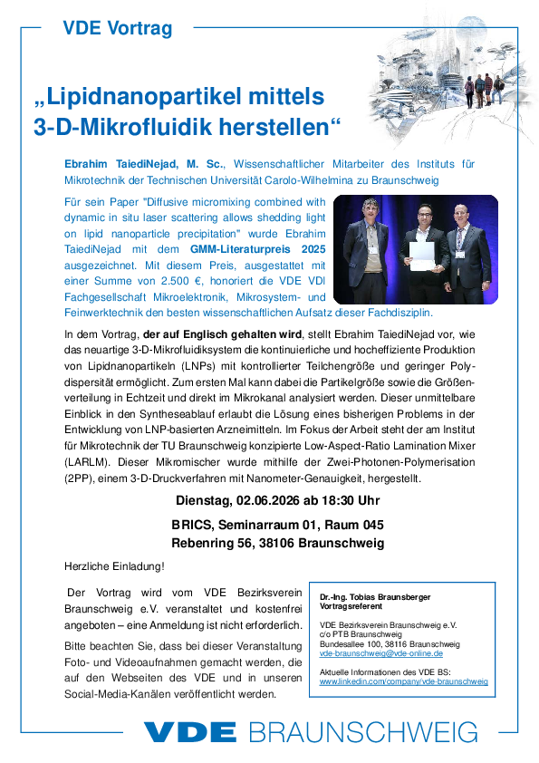 2. Juni '26: Vortrag "3D microfluidics for LNP production"