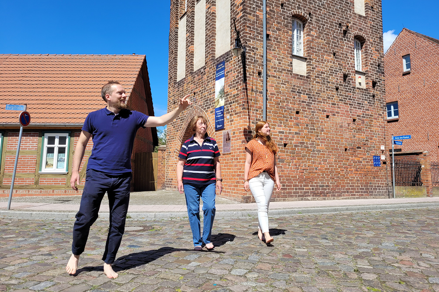 „Egal, über welche Wittenberger Straße wir laufen, wir erleben superspannende Stadtgeschichte“, sagt Museumsleiter Marcel Steller. Gemeinsam mit seinem Team hat er sogar einen Barfußpfad ins Museum gebaut. Alle Wittenberger Straßen sind so in einem Raum zu finden – mit Geschichten, Anekdoten und vielen historischen Ansichten. In einem Computerspiel wurden die Wege und Straßen der frühen Neuzeit detailgetreu nachgebildet. An einer Gaming-Station in der Ausstellung kann man so die beschwerlichen Prignitzer Wege der Vergangenheit nachempfinden und begehen.