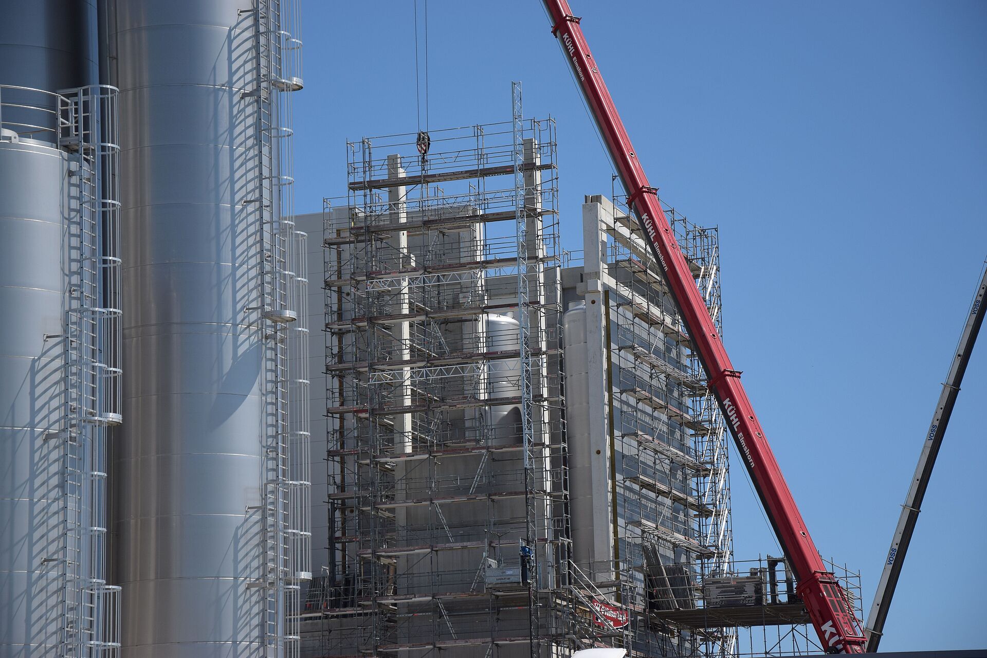 Dr. Claudia Brunner (LFPB) und Mariachiara Gallia (ISM) in der Teststrecke des Turbulenztunnels mit variabler Dichte (VDTT) während der Besichtigung der Versuchsanlagen / Dr. Claudia Brunner (LFPB) and Mariachiara Gallia (ISM) in the test section of the Variable Density Turbulence Tunnel (VDTT) during the visit to the experimental facilities