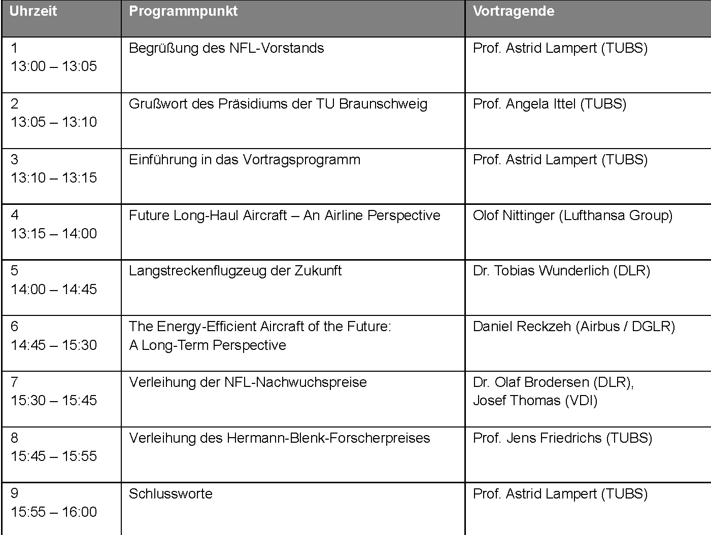 Das Programm des diesjährigen Forschungstags läuft unter dem Banner: "Langstreckenflugzeuge der Zukunft" und hält neben der alljährlichen Verleihung unserer NFL-Preise für die besten Forschungsarbeiten sowie die besten studentischen Arbeiten spannende Vorträge für Sie bereit.