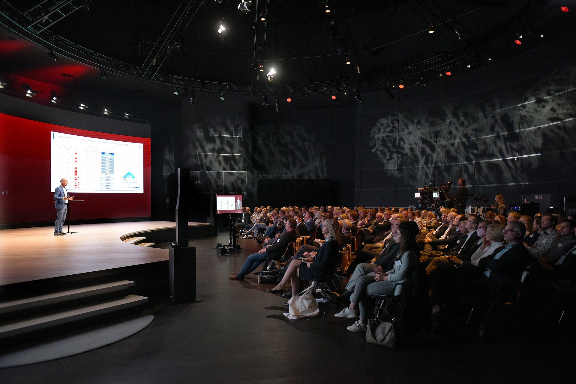 Die Referentinnen und Referenten der Auftaktveranstaltung gaben einen Überblick über die Projektinhalte und präsentierten erste Ergebnisse. Zu Beginn begrüßten die Oberbürgermeister von Braunschweig und Wolfsburg, Dr. Thorsten Kornblum und Dennis Weilmann, per Videobotschaft die Teilnehmenden im Panoramakino der Autostadt sowie via Livestream. Es folgten Grußworte des Helmstedter Landrats Gerhard Radeck und des Gastgebers Autostadt Wolfsburg durch deren Geschäftsführer Armin Maus. Eine Projektbilanz nach den ersten neun Monaten Arbeit zog Thomas Ahlswede-Brech, Leiter Mobilität und Wirtschaft bei der Allianz für die Region. “Nach dem Aufbau des interdisziplinären Projektteams konnten wir bereits wichtige Kooperationspartner wie die TU Braunschweig, das Deutsche Zentrum für Luft- und Raumfahrt (DLR) und ITS mobility gewinnen sowie die für uns wichtige Ausgangsstudie zur Lage der Automobilwirtschaft durch die Prognos AG erstellen“, sagte Ahlswede-Brech. „Nun folgt die Beteiligungsphase für die Unternehmen, die sich aktiv in den TransformationsLabs einbringen können.“