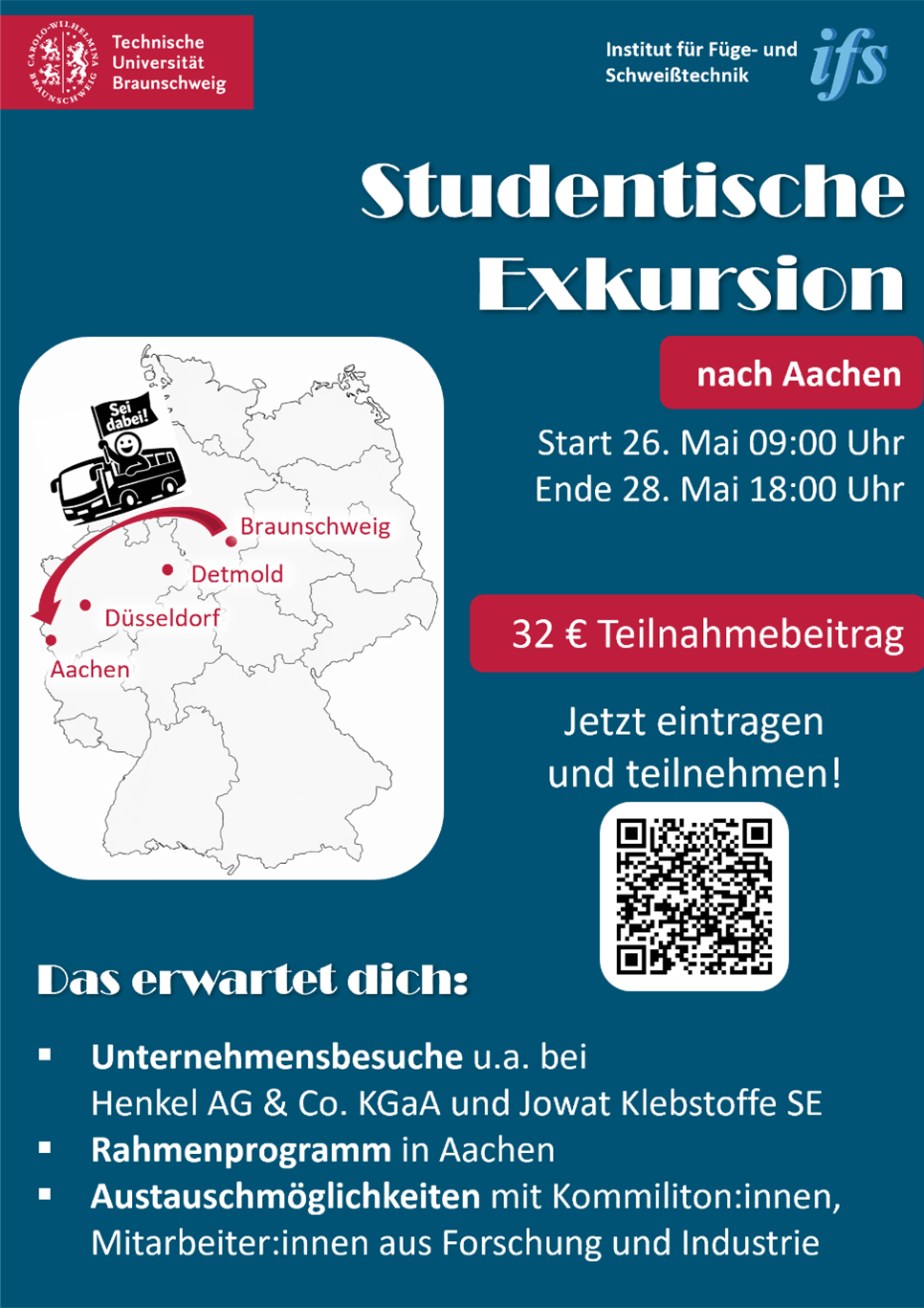 Das Institut für Füge- und Schweißtechnik eine studentische Exkursion nach Aachen vom 26. Mai bis 28. Mai 2026 an.