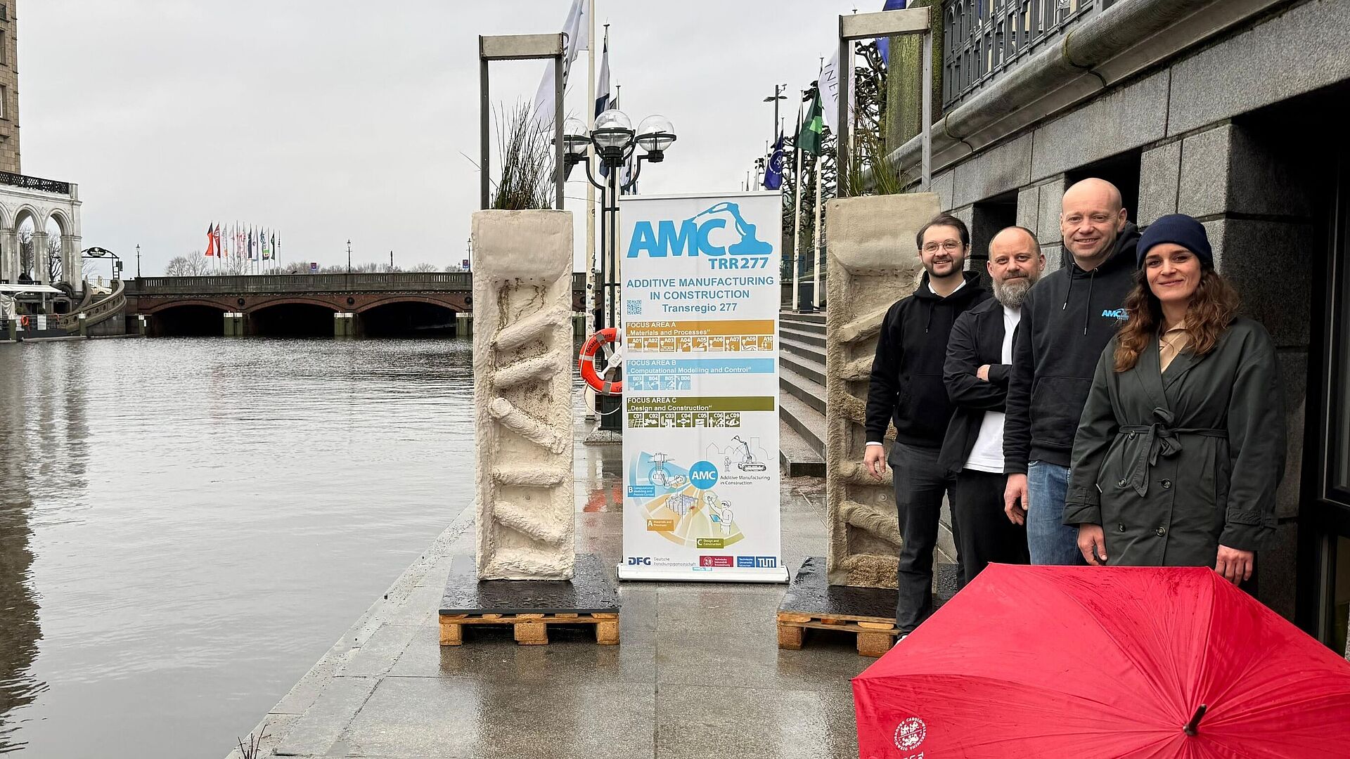 The Collaborative Research Center Transregio TRR 277 Additive Manufacturing in Construction (AMC) aims to fundamentally research additive manufacturing (3D printing) as a novel digital manufacturing technology for construction. In the interdisciplinary, cross-location research project, the two universities TU Braunschweig and TU Munich, pursue the novel manufacturing approach for the construction industry. Additive manufacturing can develop into a key technology for the digitalization of the construction industry. Complex research questions on materials, process engineering, control, modeling, design and construction are being investigated holistically by scientists from the fields of civil and mechanical engineering.