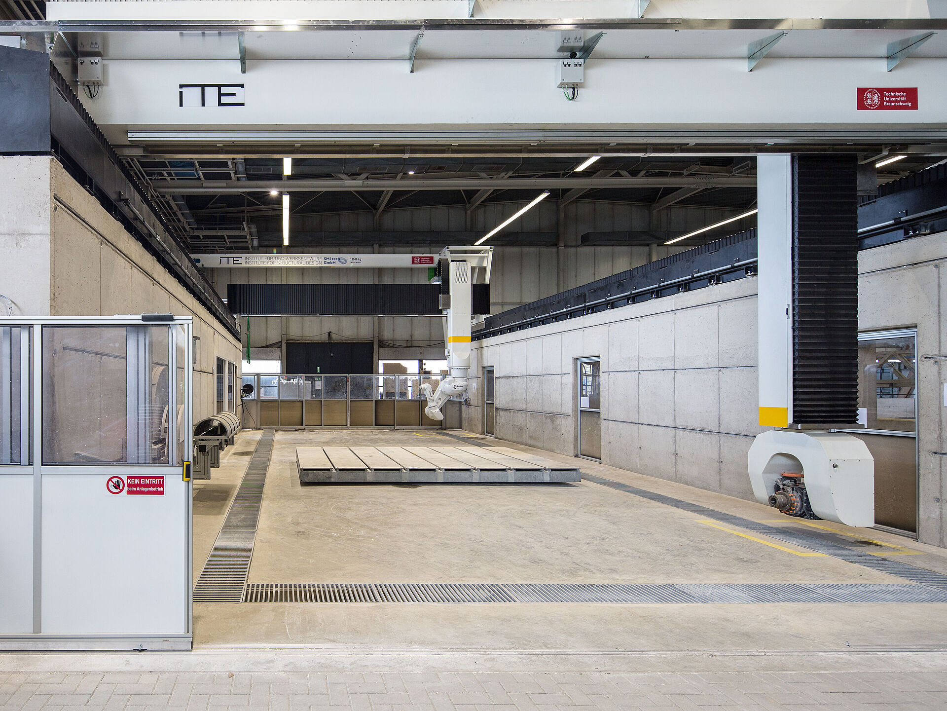The DBFL laboratory is unique in its concept and implementation and forms the foundation for research in digital construction fabrication at the Institute of Structural Design (ITE) and the Technical University of Braunschweig. Its goal is to combine advanced material technologies with innovative structural design concepts through robot-controlled production processes, enabling the development of resource-efficient load-bearing structures for the construction industry.