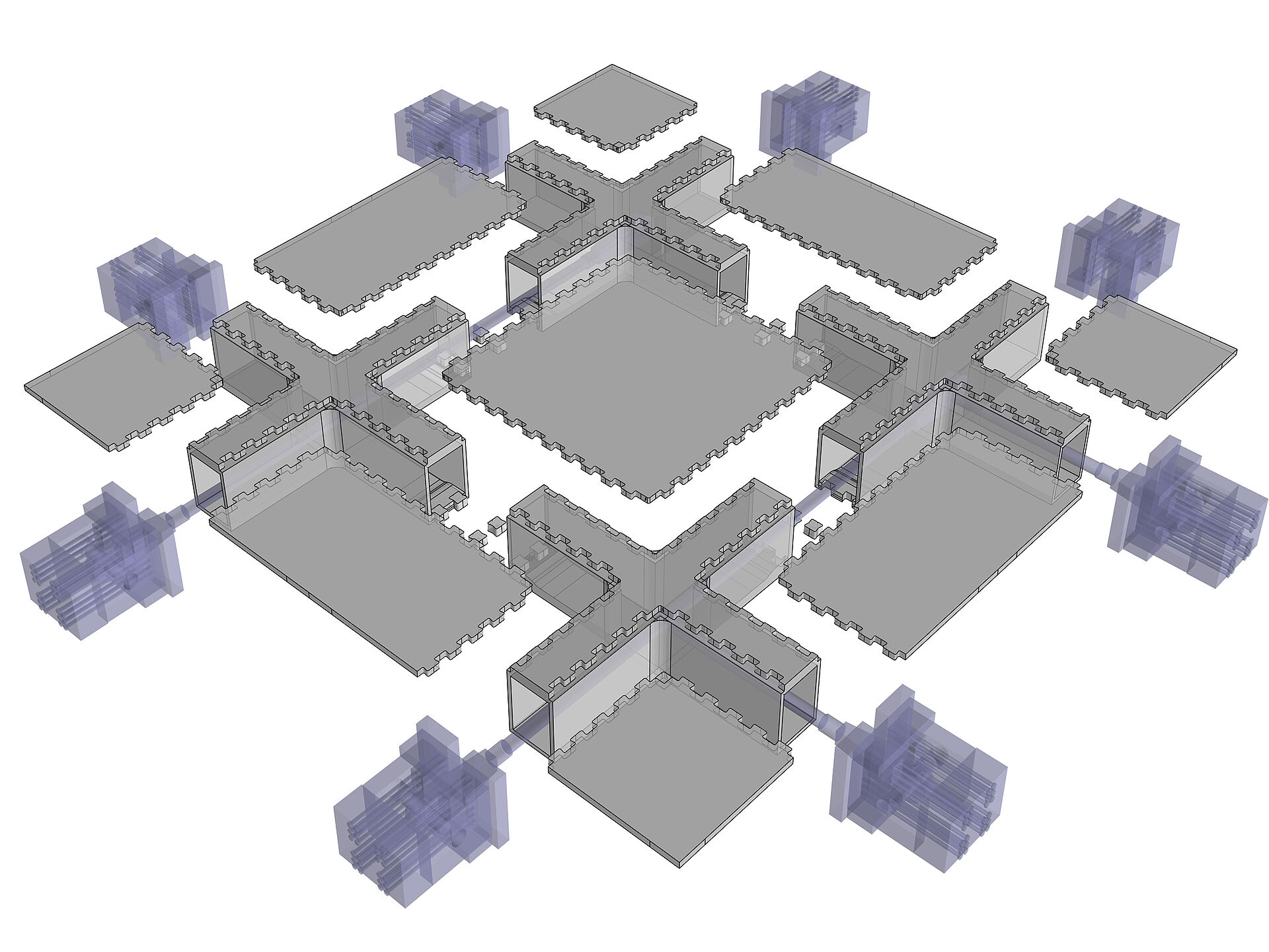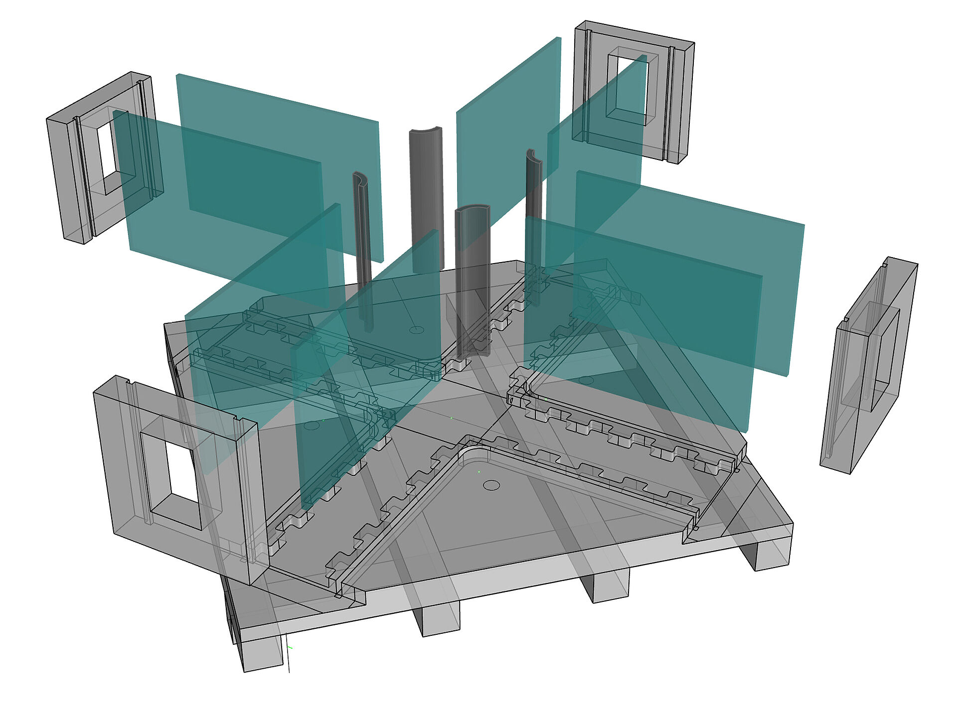 The focus of the research in the second funding period was to transform the novel connections for UHPFRC components developed in the first application phase into high-performance lightweight bar, surface, and spatial load-bearing elements. The goal was to increase the load-bearing capacity of components and structures by intelligently coupling individual modular rod and surface elements to form hybrid, interacting load-bearing elements and systems. By combining dry-jointed bars with shear-resistant, flat or curved surface elements, the feasibility of a wide range of structurally relevant structural types, from predominantly flexurally stressed structures to form-optimized shells, was to be demonstrated. The fundamentals of the first funding period were retained: