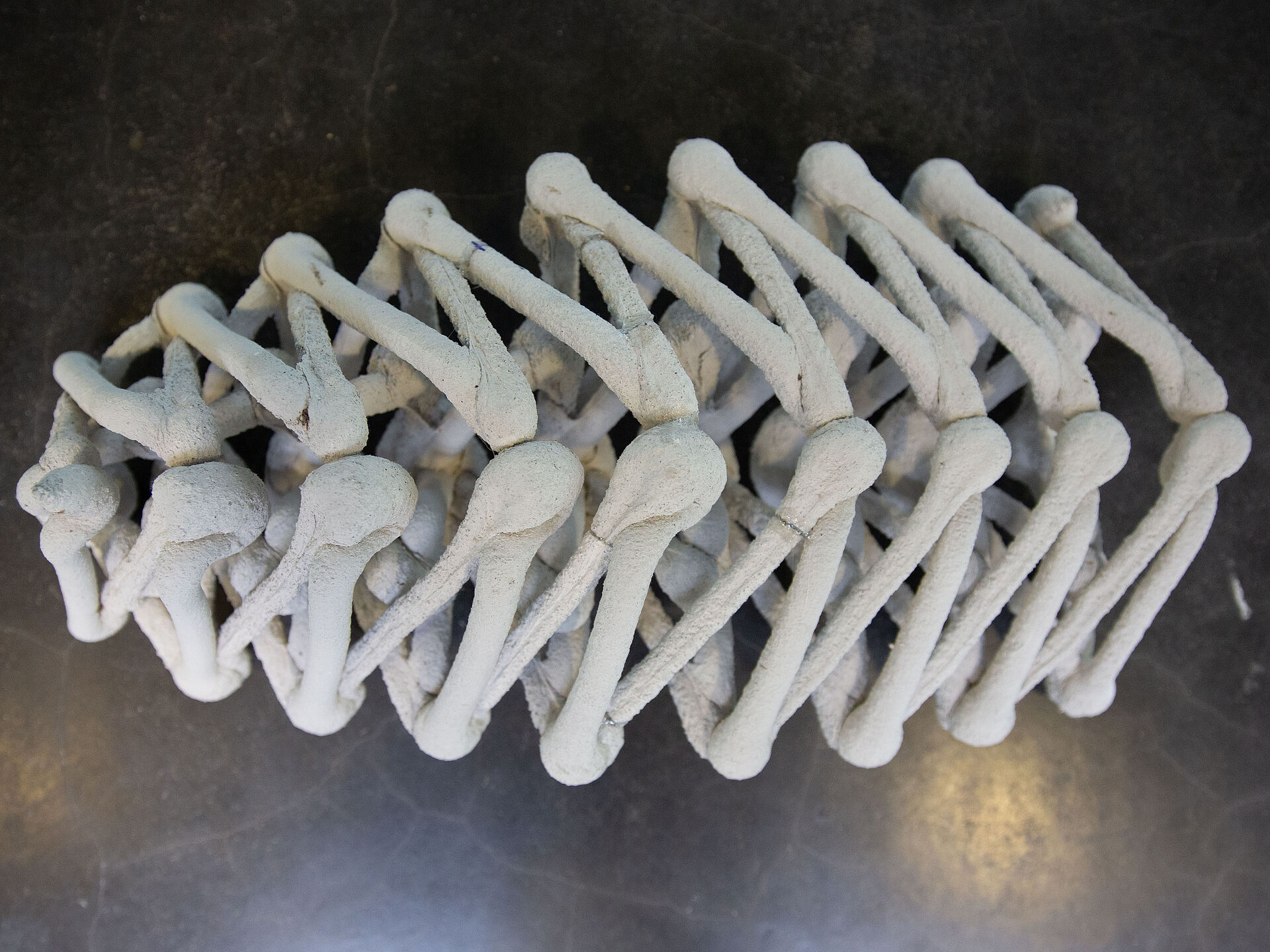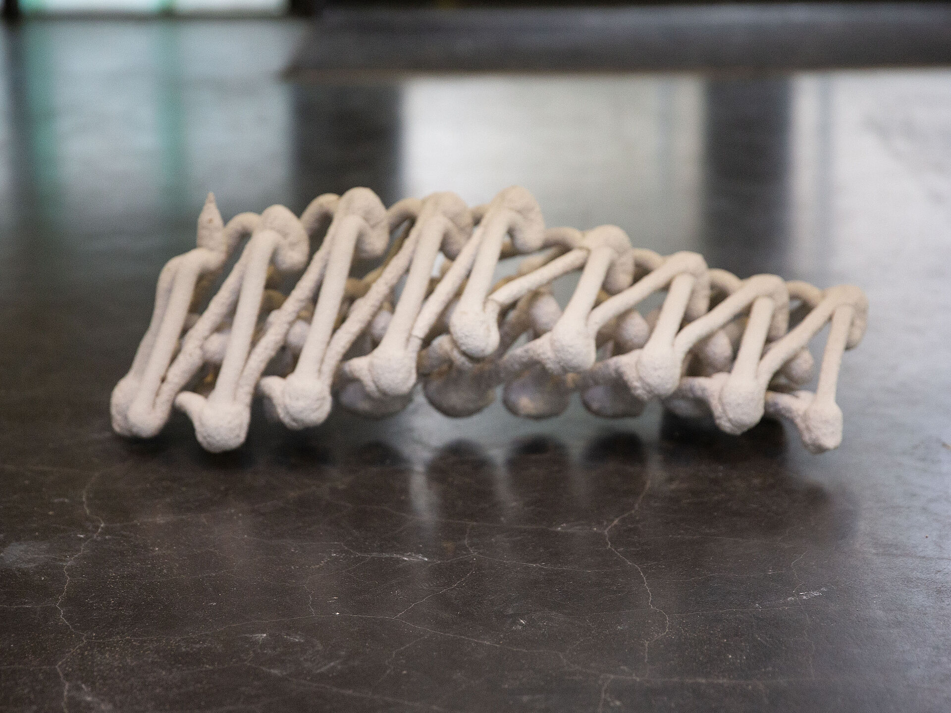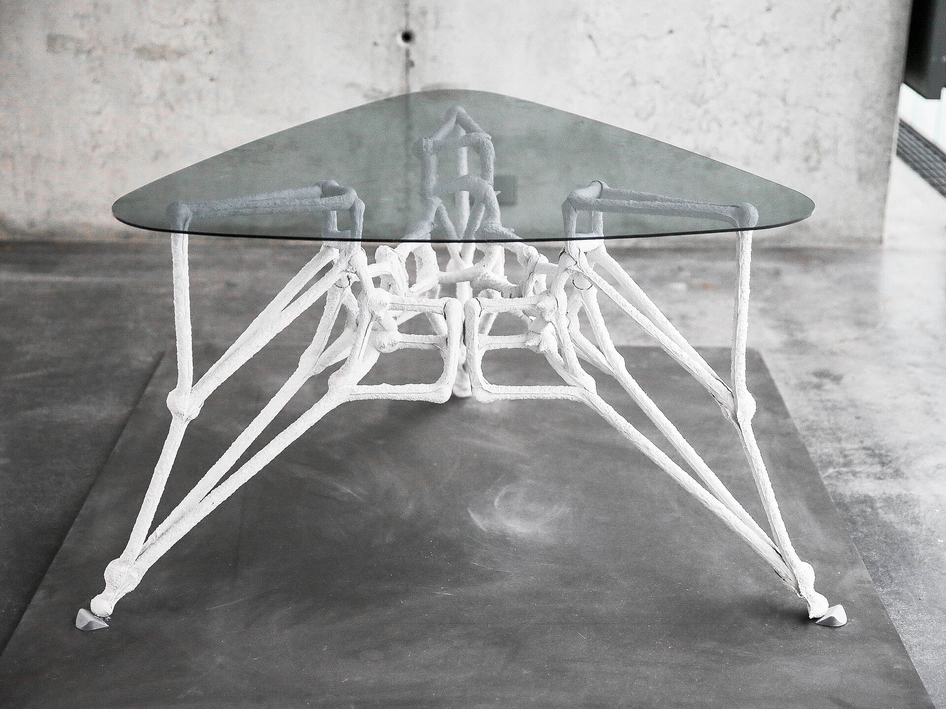 Today, the majority of research in 3D concrete printing focuses on one of the three methods: firstly, material extrusion; secondly, particle-bed binding; and thirdly, material jetting. Common to all these technologies is that the material is applied in horizontal layers. In this project, a novel 3D concrete printing technology is presented which challenges this principle: the so-called Injection 3D Concrete Printing (I3DCP) technology is based on the concept that a fluid material (M1) is robotically injected into a material (M2) with specific rheological properties, causing material M1 to maintain a stable position within material M2. Different to the layered deposition of horizontal strands, intricate concrete structures can be created through printing spatially free trajectories, that are unconstrained by gravitational forces during printing.