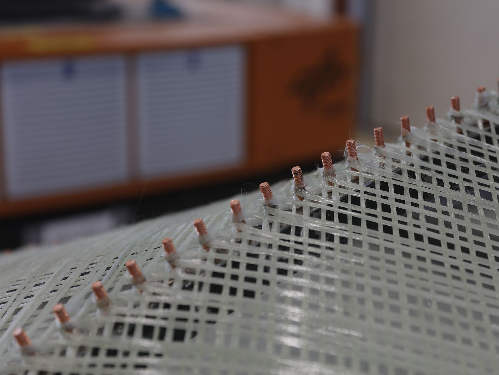 The core objective of Phase 2 is to enable automated, adaptive, and sustainable on-site production of fiber reinforcement under real construction conditions. This includes addressing challenges such as varying environmental influences, complex geometries, variable reinforcement diameters, and multi-robot collaboration. To achieve this, A05 will develop controlled and sensor-supported fabrication processes, transitioning from deterministic workflows to feedback-driven manufacturing. New sensing systems will measure key parameters such as fiber tension, degree of cure, fiber volume fraction, and surface structuring to ensure robust production quality.