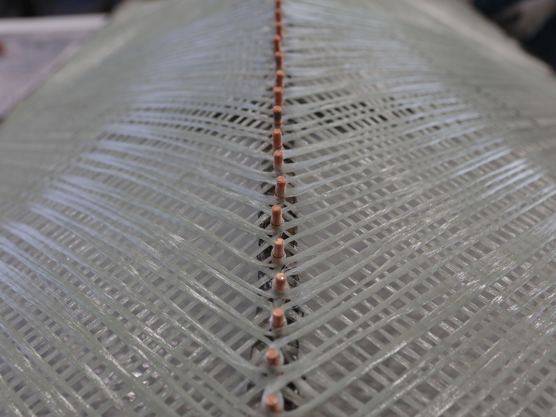 The core objective of Phase 2 is to enable automated, adaptive, and sustainable on-site production of fiber reinforcement under real construction conditions. This includes addressing challenges such as varying environmental influences, complex geometries, variable reinforcement diameters, and multi-robot collaboration. To achieve this, A05 will develop controlled and sensor-supported fabrication processes, transitioning from deterministic workflows to feedback-driven manufacturing. New sensing systems will measure key parameters such as fiber tension, degree of cure, fiber volume fraction, and surface structuring to ensure robust production quality.