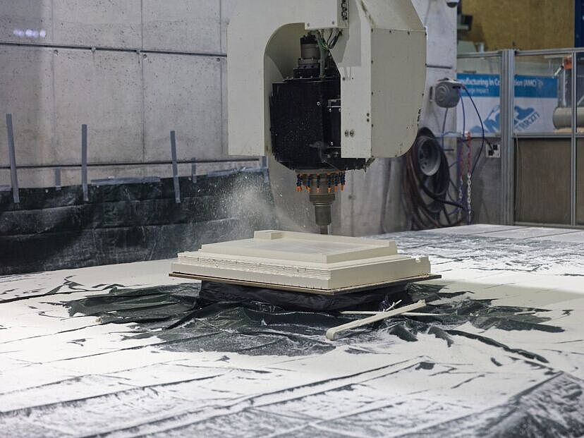 By combining wax foam 3D printing with CNC milling, the hybrid process compensates for the inherent limitations of each individual method, resulting in a highly efficient and precise manufacturing approach. The technology is currently being further developed within a self-financed research consortium, with the aim of industrial implementation in precast concrete plants.