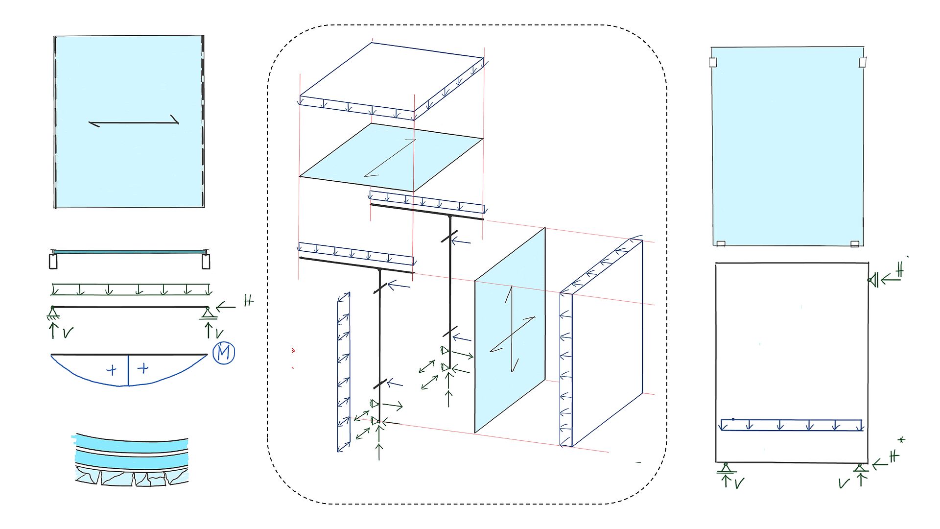 Den Studierenden wird zunächst ein Grundverständnis für die Aufgaben und Funktionen eines Tragwerks vermittelt, welches sich materialübergreifend als integraler Bestandteil eines jeden Bauwerks versteht. Hierbei definiert das gewählte Tragsystem nicht nur die gestalterischen Spielräume für die Umsetzung der architektonischen Vision, sondern fungiert insbesondere als wichtiger Hebel für eine möglichst wirtschaftliche und nachhaltige Umsetzung.