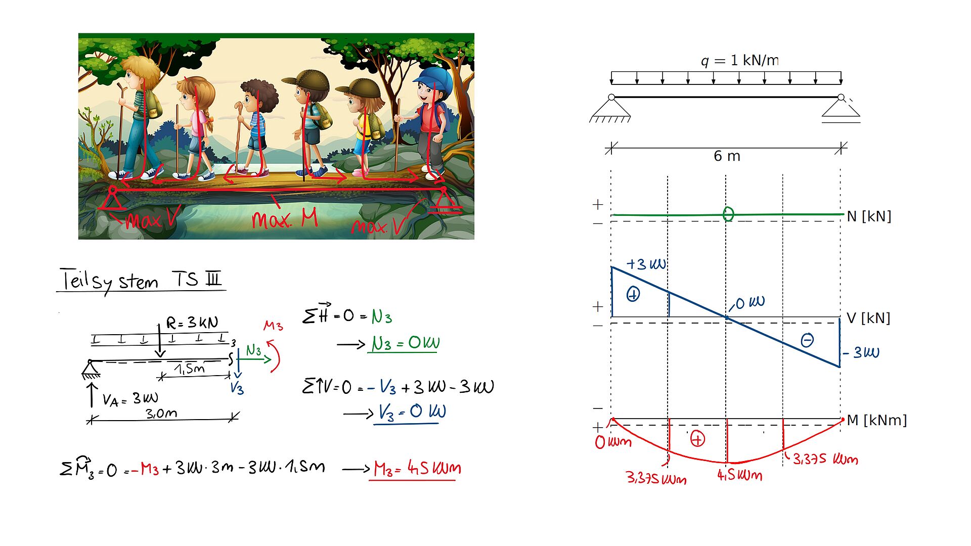 Statik: Ermittlung von Auflagerkräften und Schnittgrößen an einfachen statischen Systemen