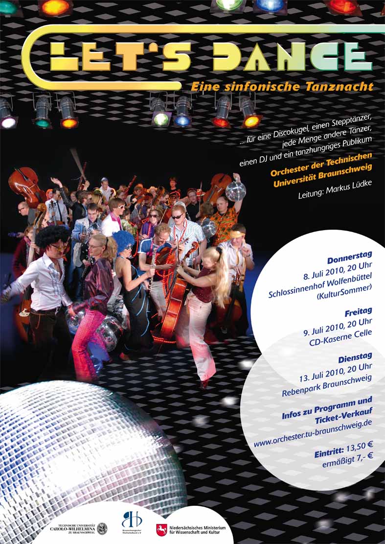 für eine Disco-Kugel, einen Stepptänzer, jede Menge andere Tänzer, einen DJ, ein tanzhungriges Publikum – allesamt rund um das Orchester der Technischen Universität Braunschweig