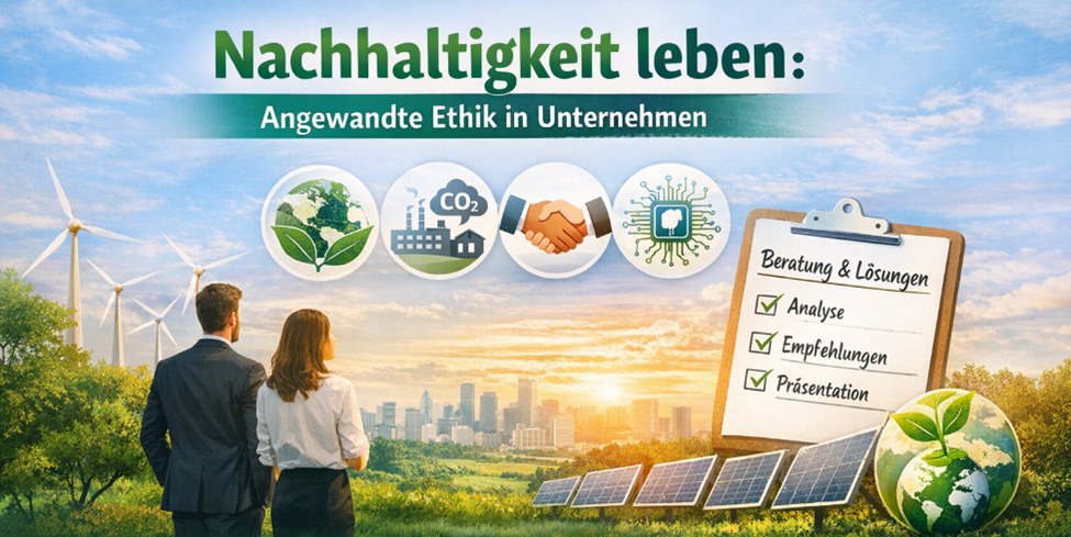 Das bedeutet: Sie analysieren ein aktuelles ethisches Problem aus Unternehmen und Gesellschaft und entwickeln darauf aufbauend praxisnahe Handlungsempfehlungen.